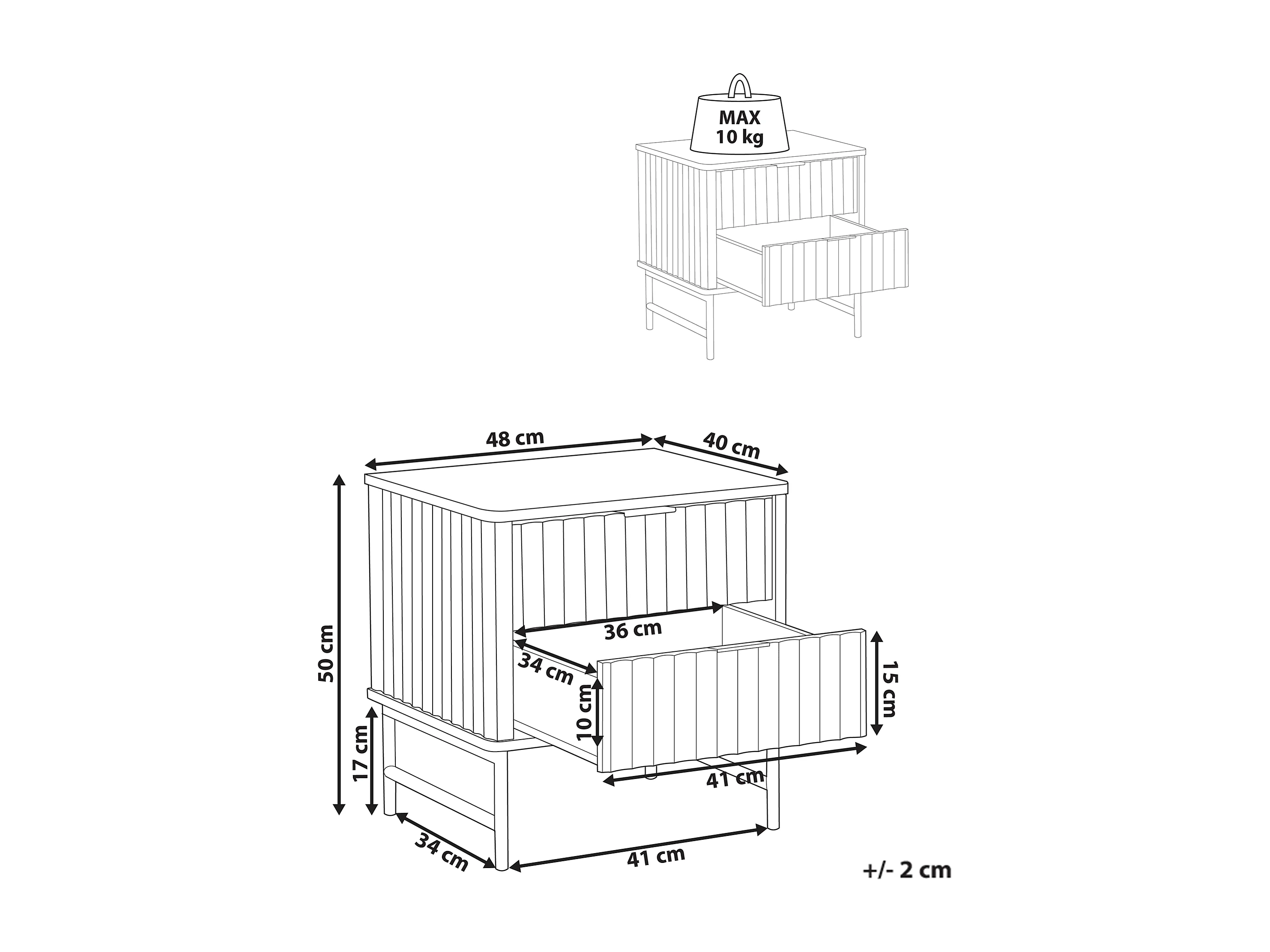 Table de chevet - 54 cm - noir avec pieds noires - VELLORE