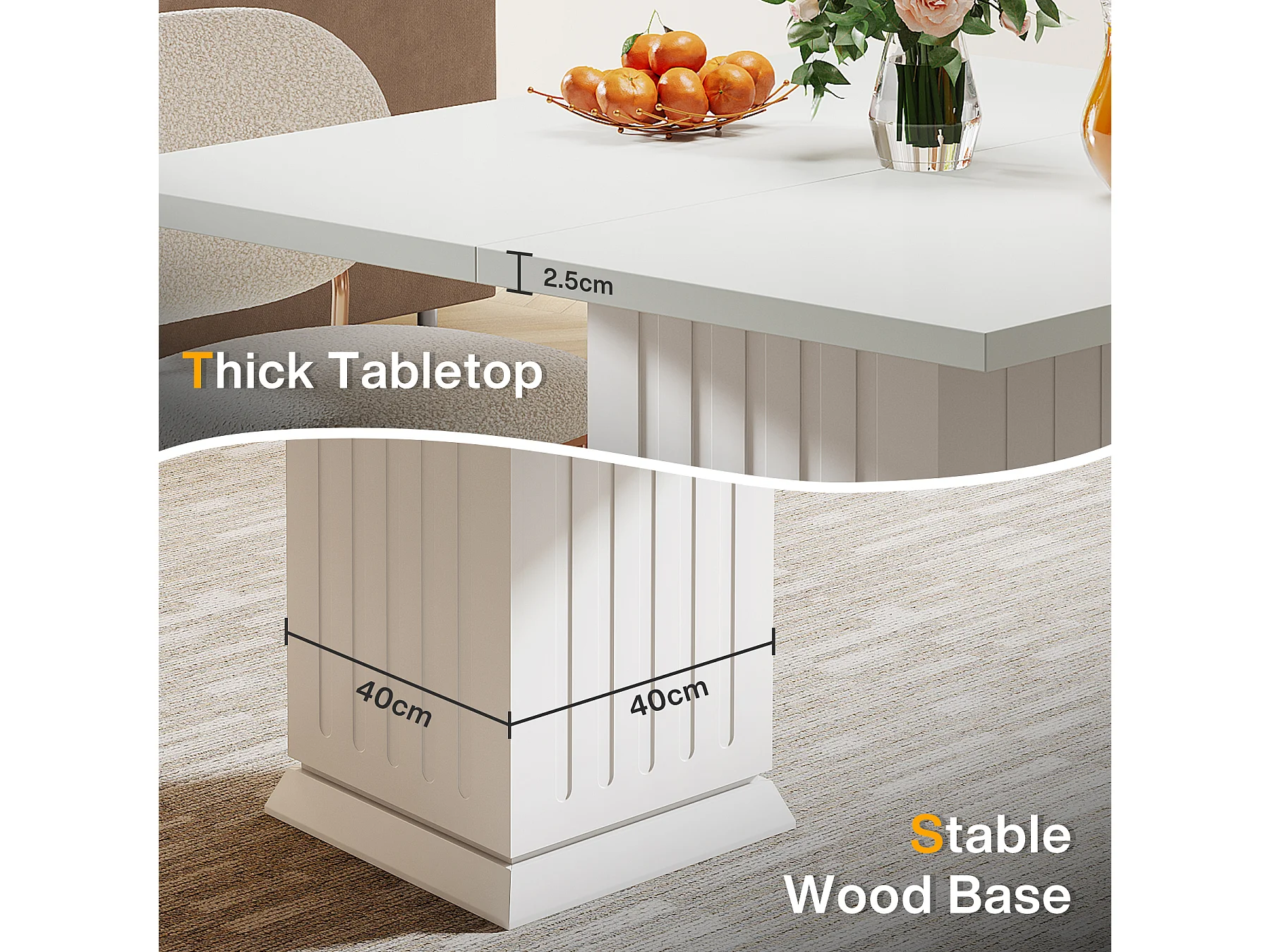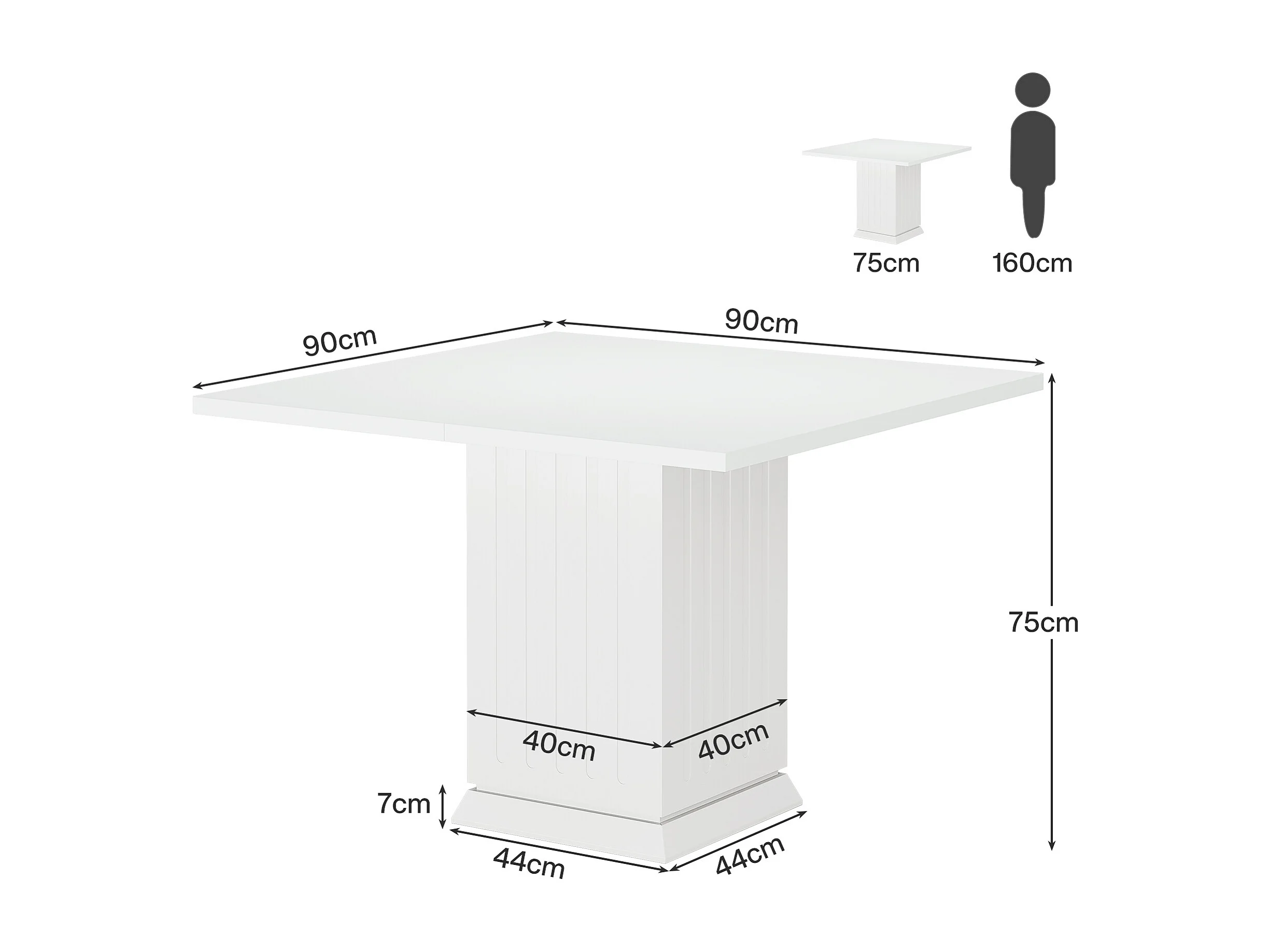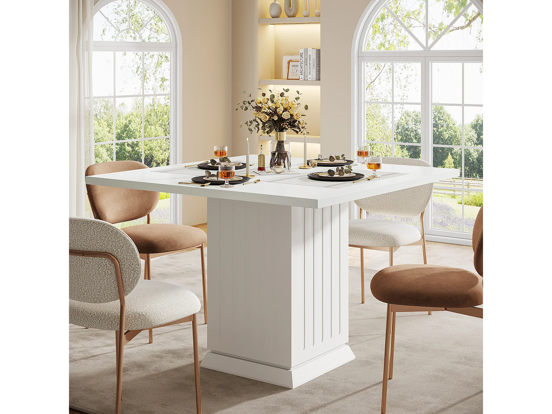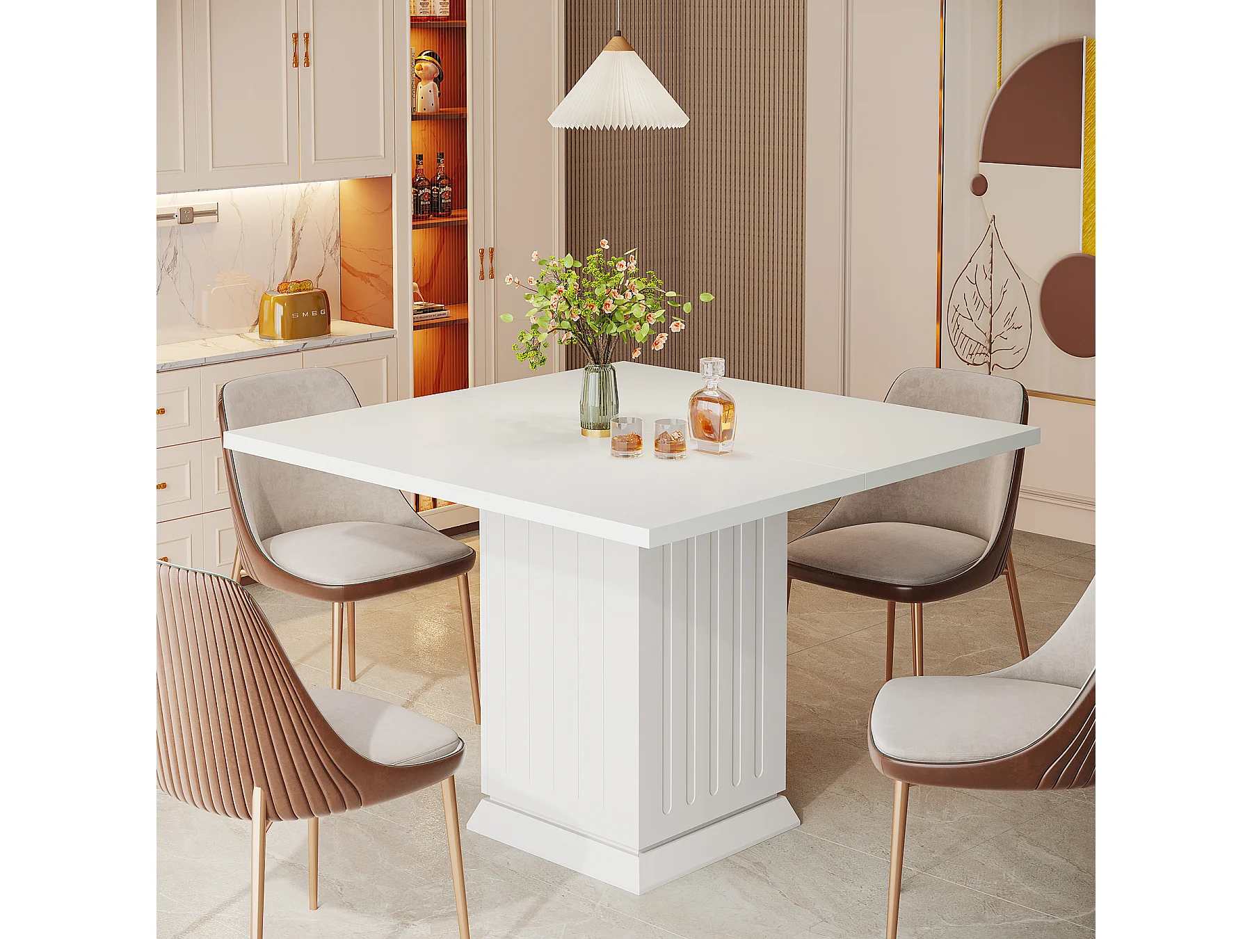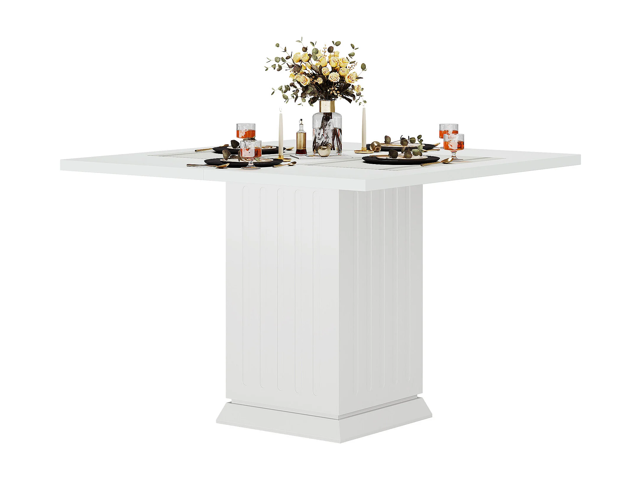 Table de salle à manger carrée avec 2 sets de table, petite table de cuisine blanche pour 4 personnes