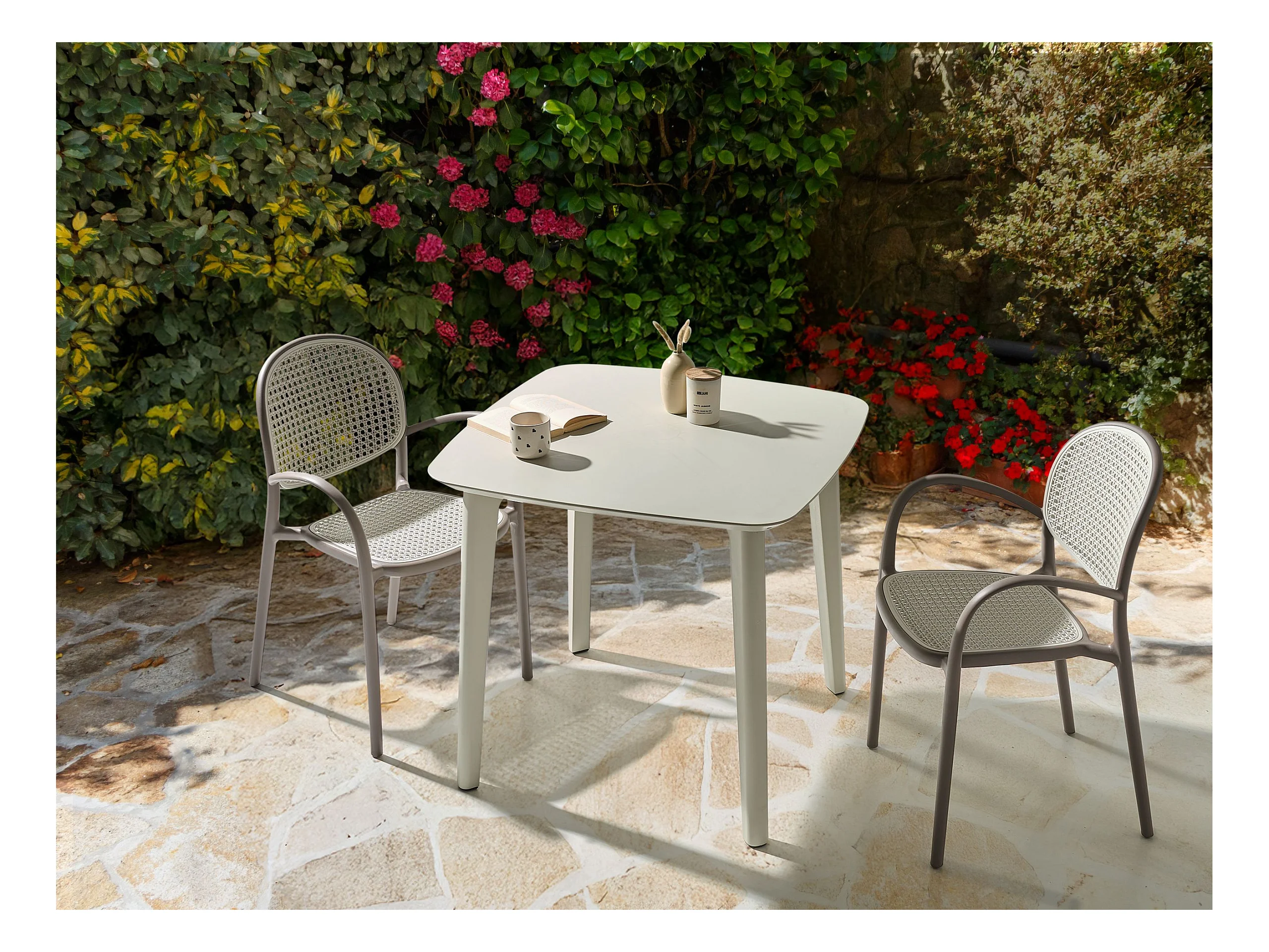 Petite table de jardin carré ZAKOR – Fonctionnelle et pensée pour durer-Beige