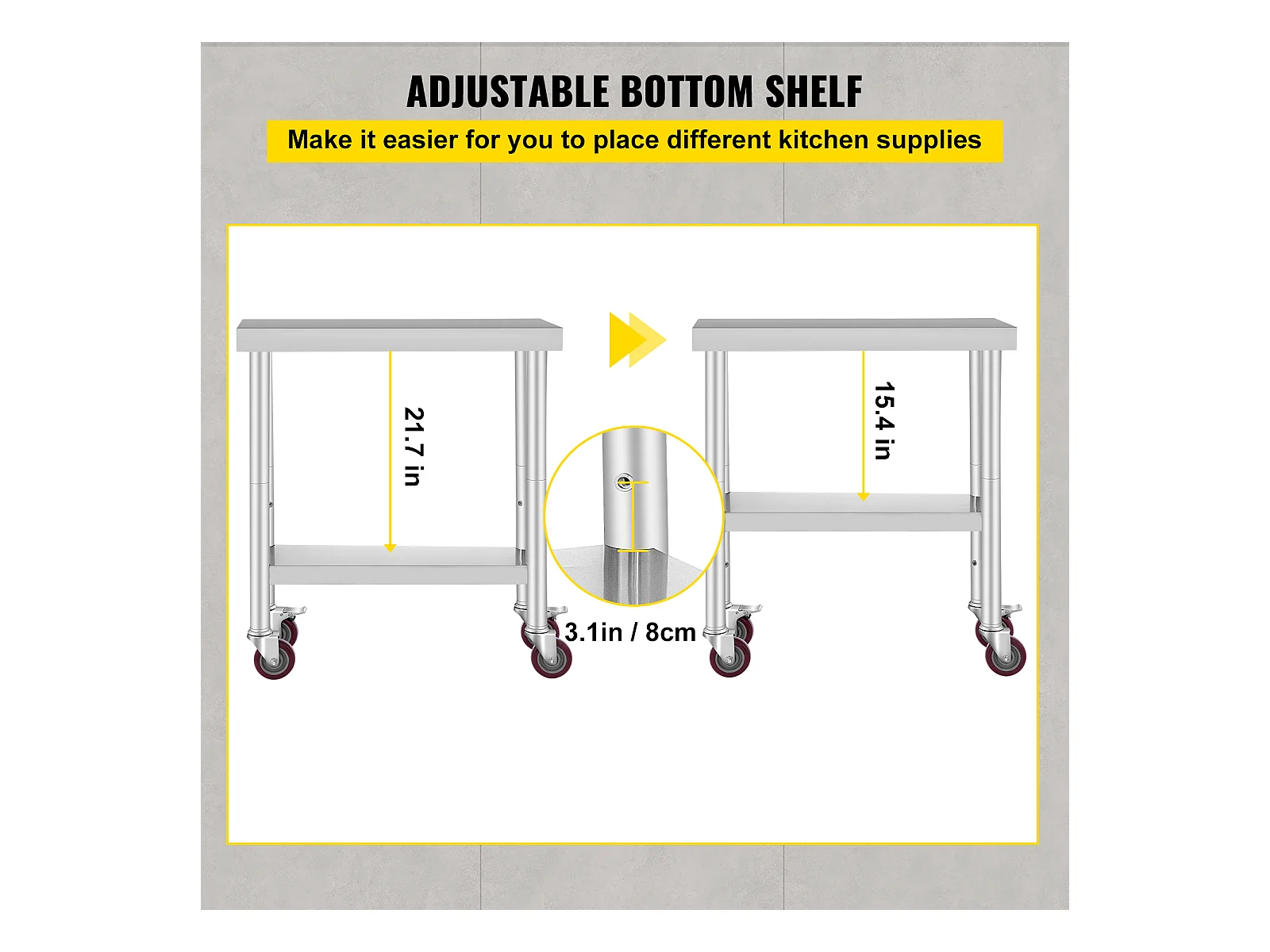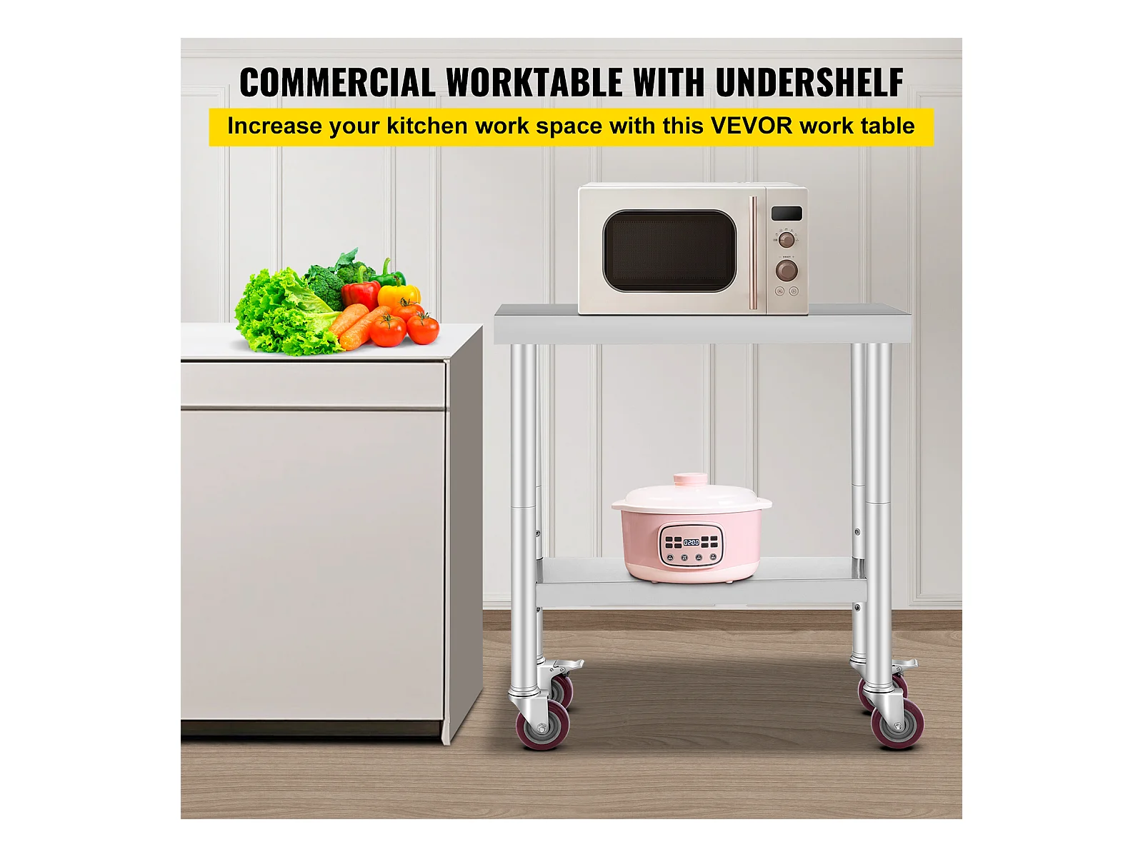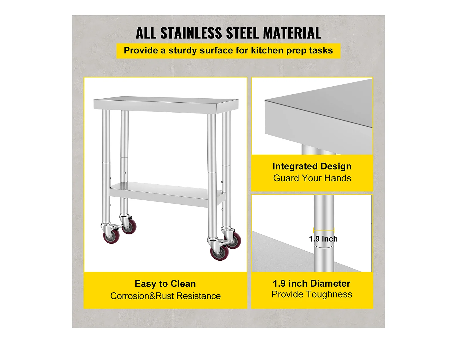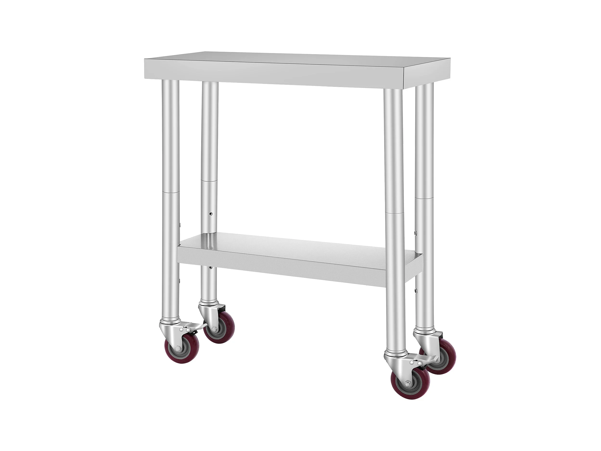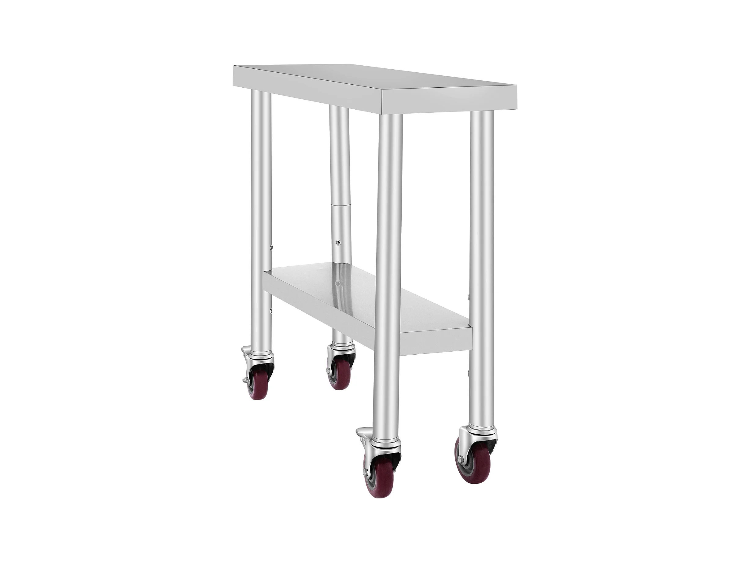 Table de Travail Cuisine SucceBuy 76.2x30.48 cm avec 4 Roulettes, Table de Préparation Commerciale en Acier Inoxydable
