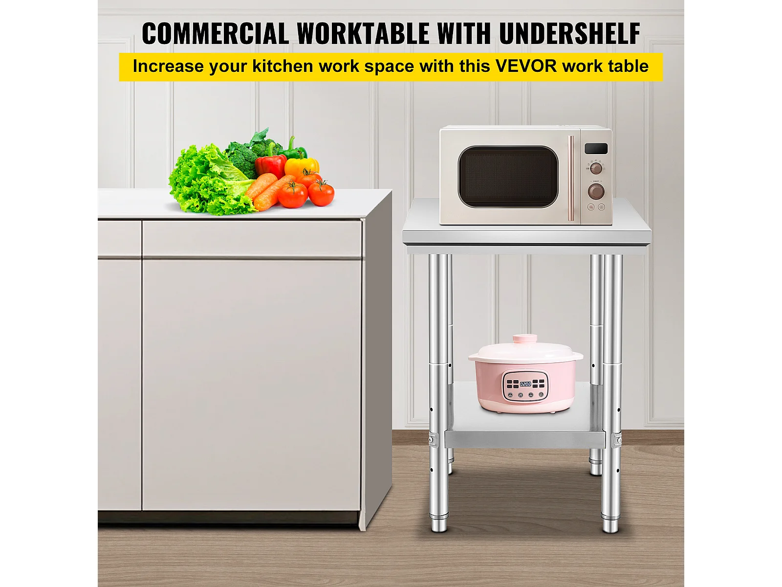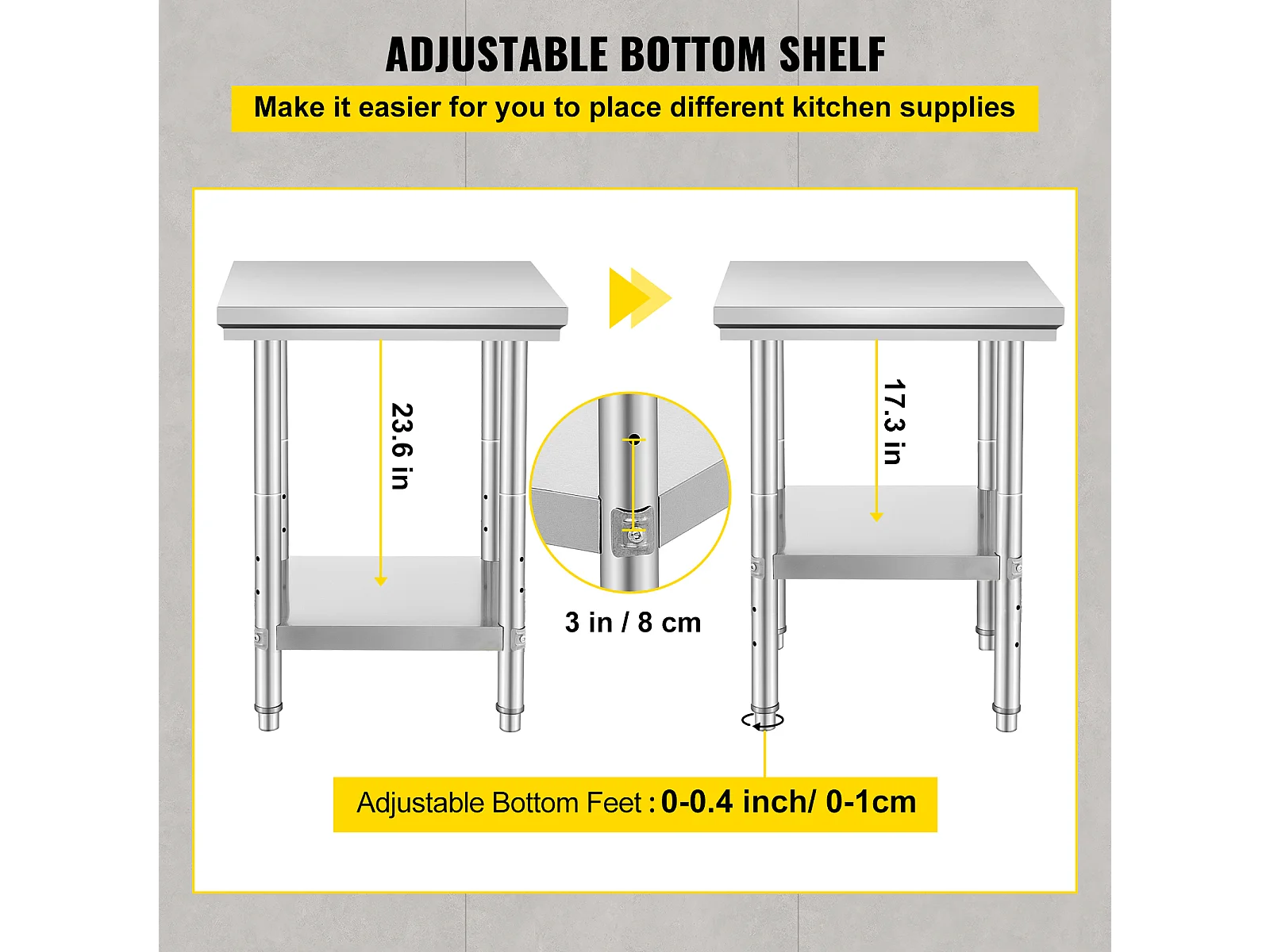 Table de Travail Cuisine SucceBuy, Table de Préparation en Acier Inoxydable, 60.96x60.96x78.74 cm