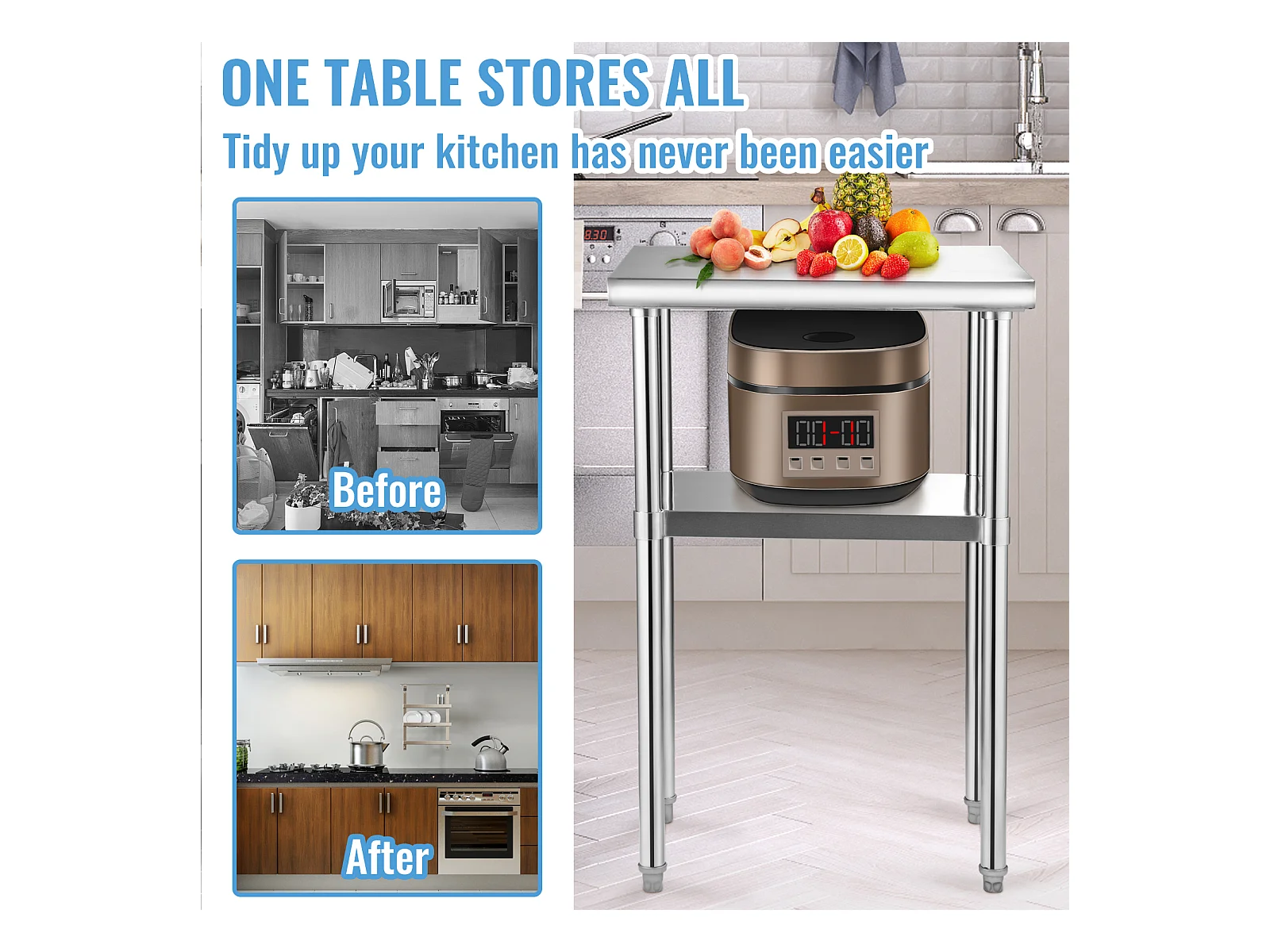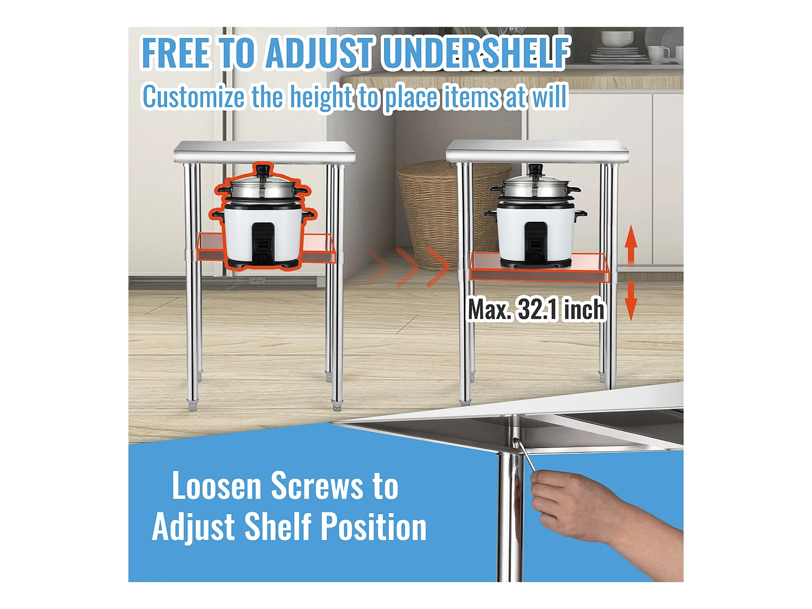 Table de Travail en Acier Inoxydable SucceBuy, 61 x 46 x 91cm, Table de Préparation des Aliments Commerciale