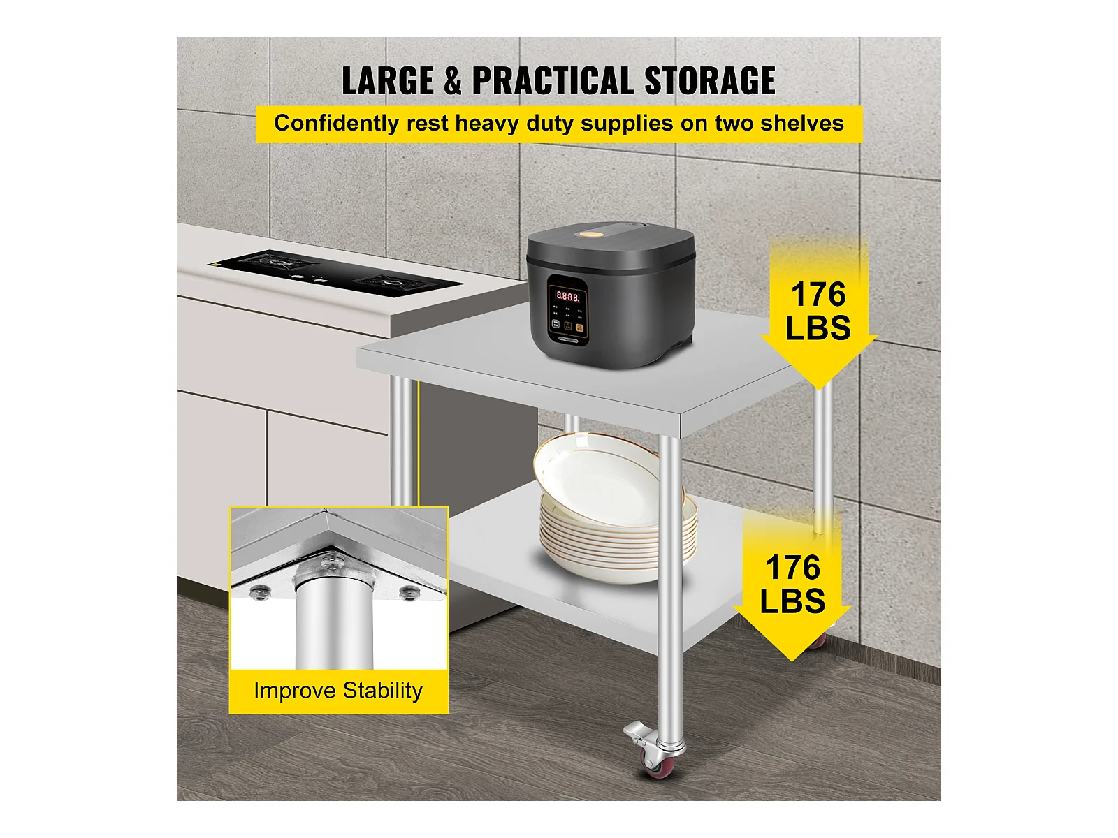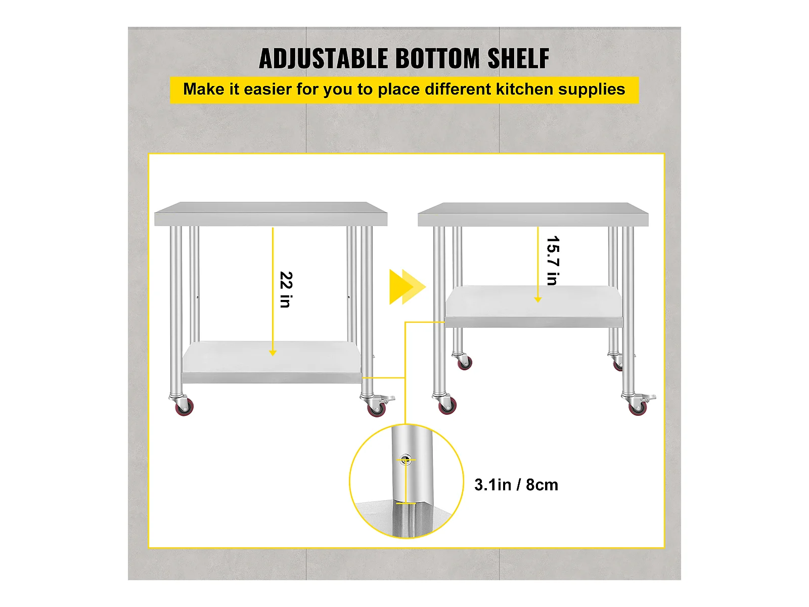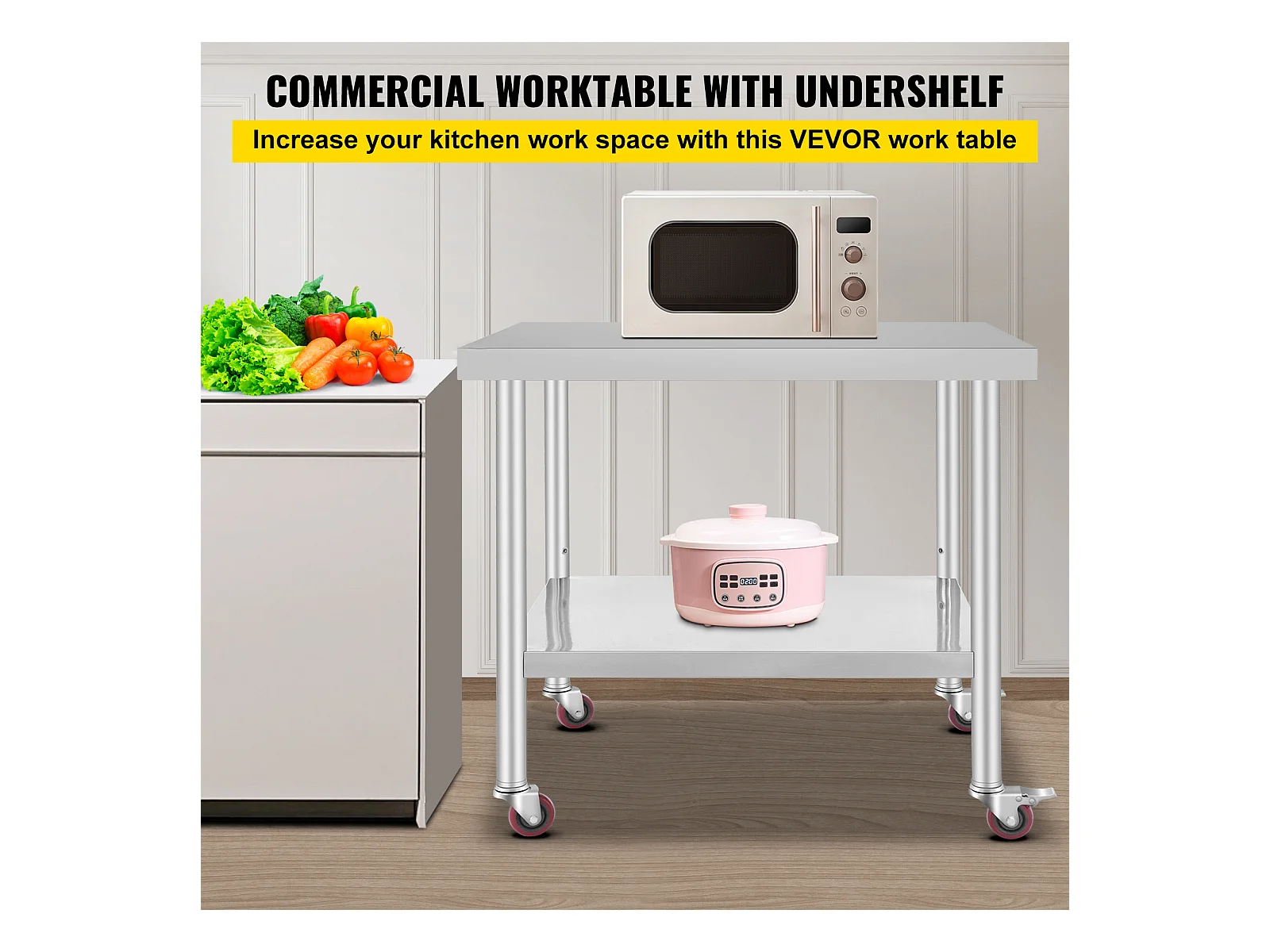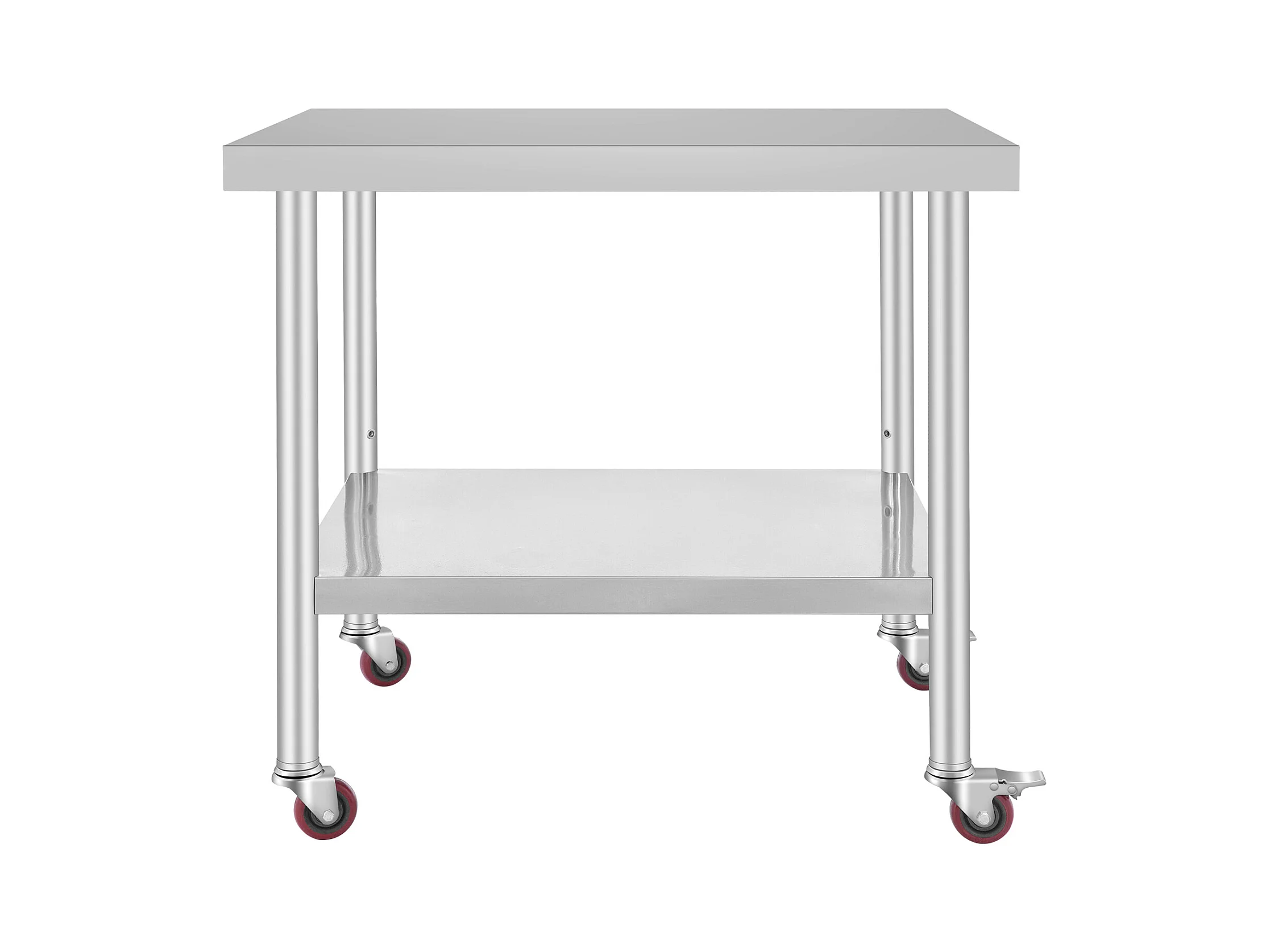 Table de Travail SucceBuy Table de Travail en Acier Inoxydable Table de Préparation Commerciale 36 x 30 Pouces avec 4 Roulettes