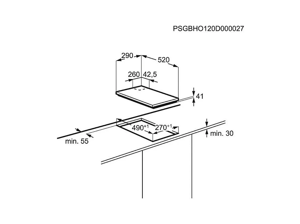 Plaque gaz ELECTROLUX 29cm, EGC 3322 NVK