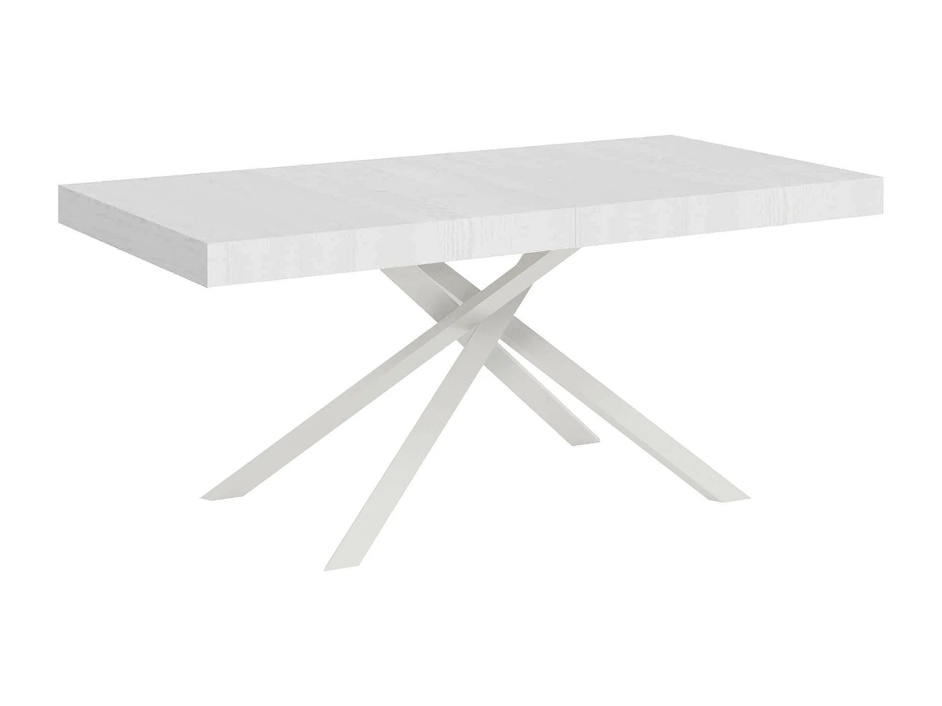 Table extensible 160/264x90 cm Karida frêne blanc pieds blancs