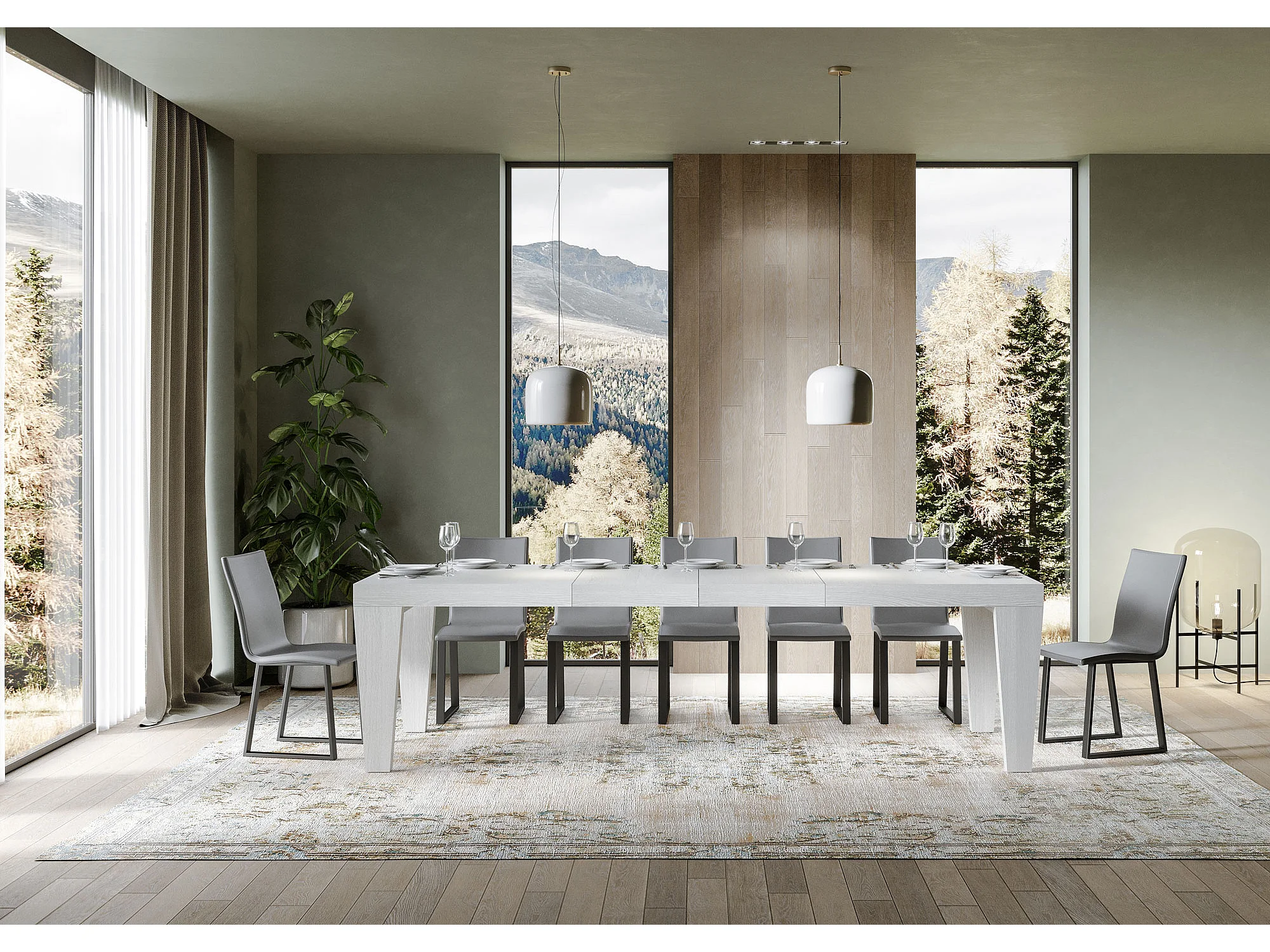 Table extensible 180/284x90 cm Volantis Premium frêne blanc pieds anthracite