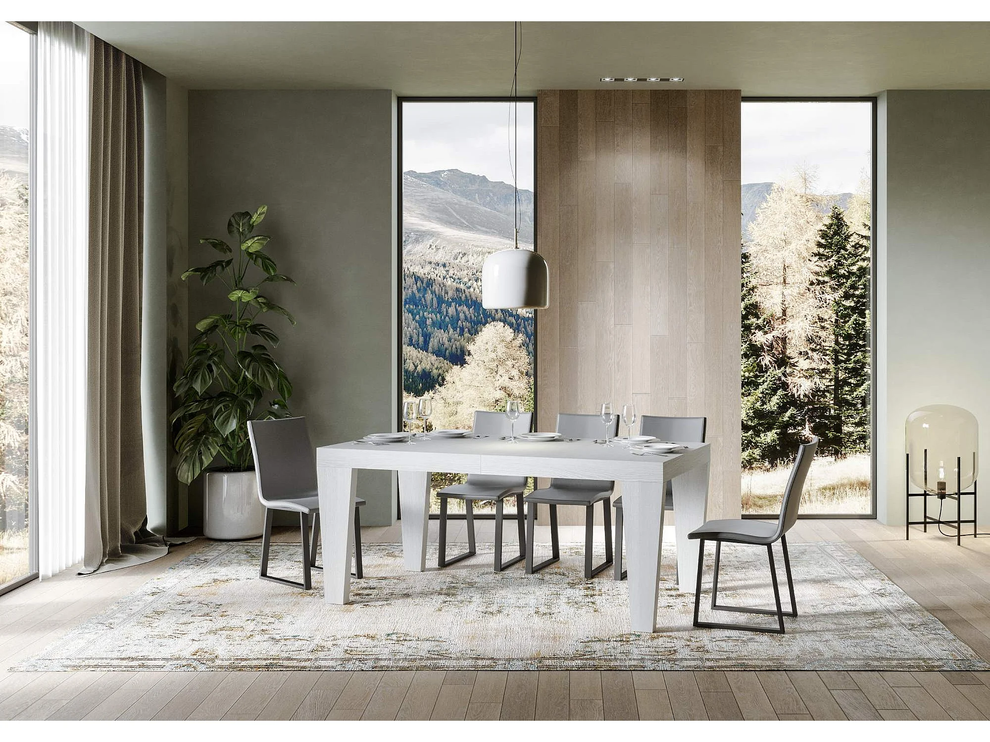 Table extensible 180/284x90 cm Everyday Premium frêne blanc pieds anthracite