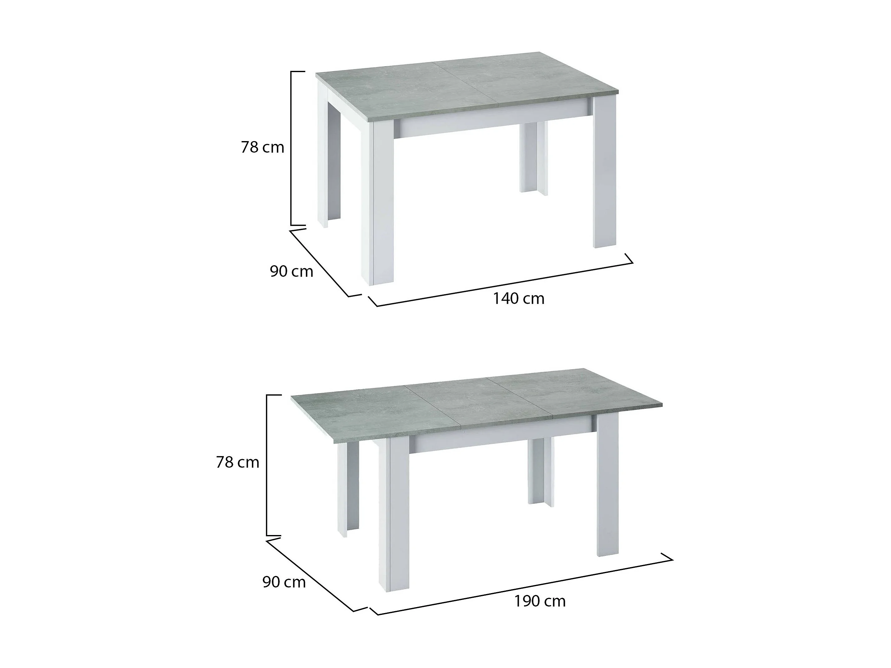 Table extensible Dalice, Console extensible pour salle à manger, Table de cuisine ouvrant avec rallonge, 140/190x90h78 cm, Ciment et Blanc