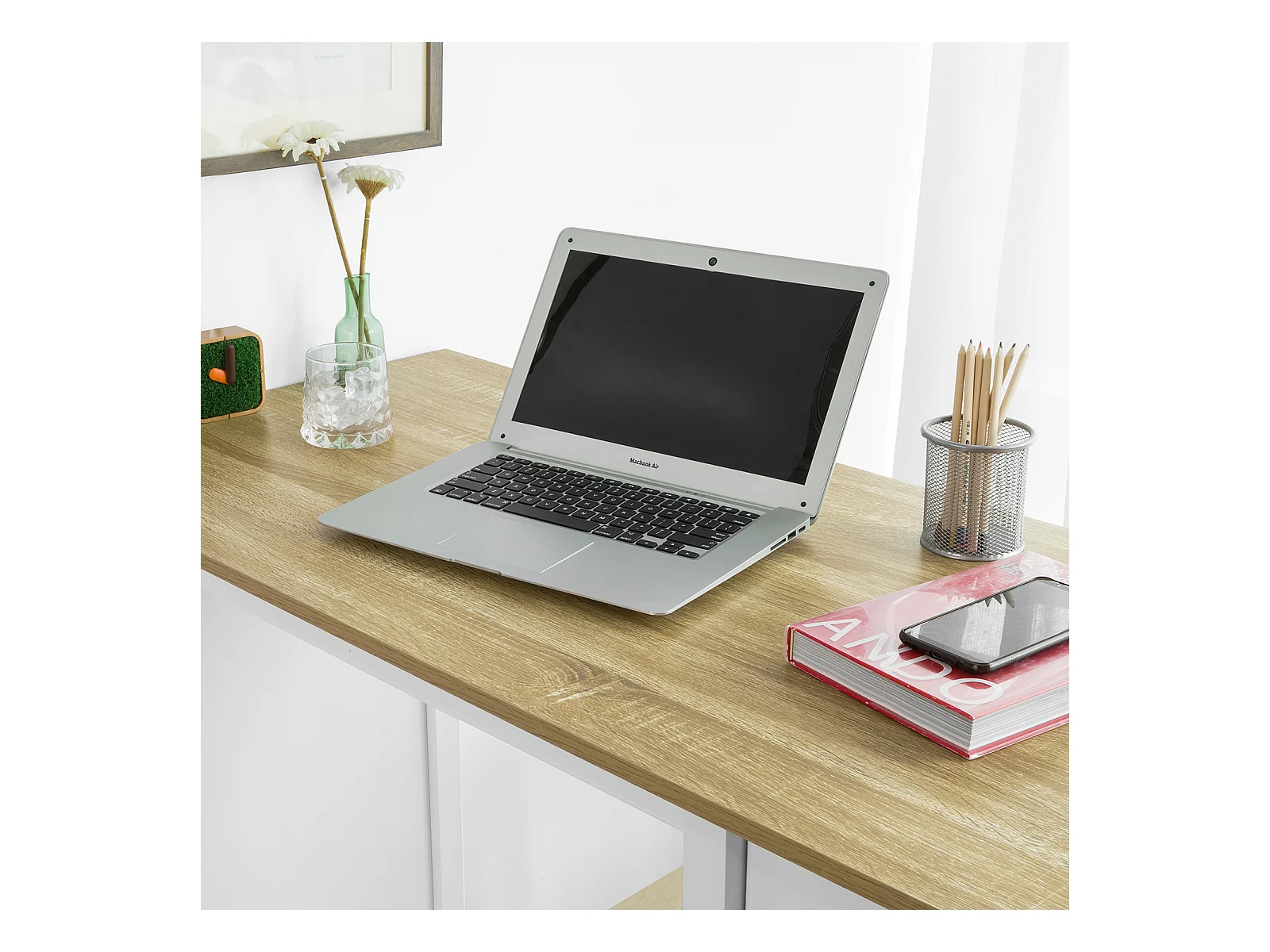 Meuble de bar extensible - 138-204 x 39 x 105 cm - avec étagère snack + 2 tiroirs + 2 portes - MDF + Métal - blanc