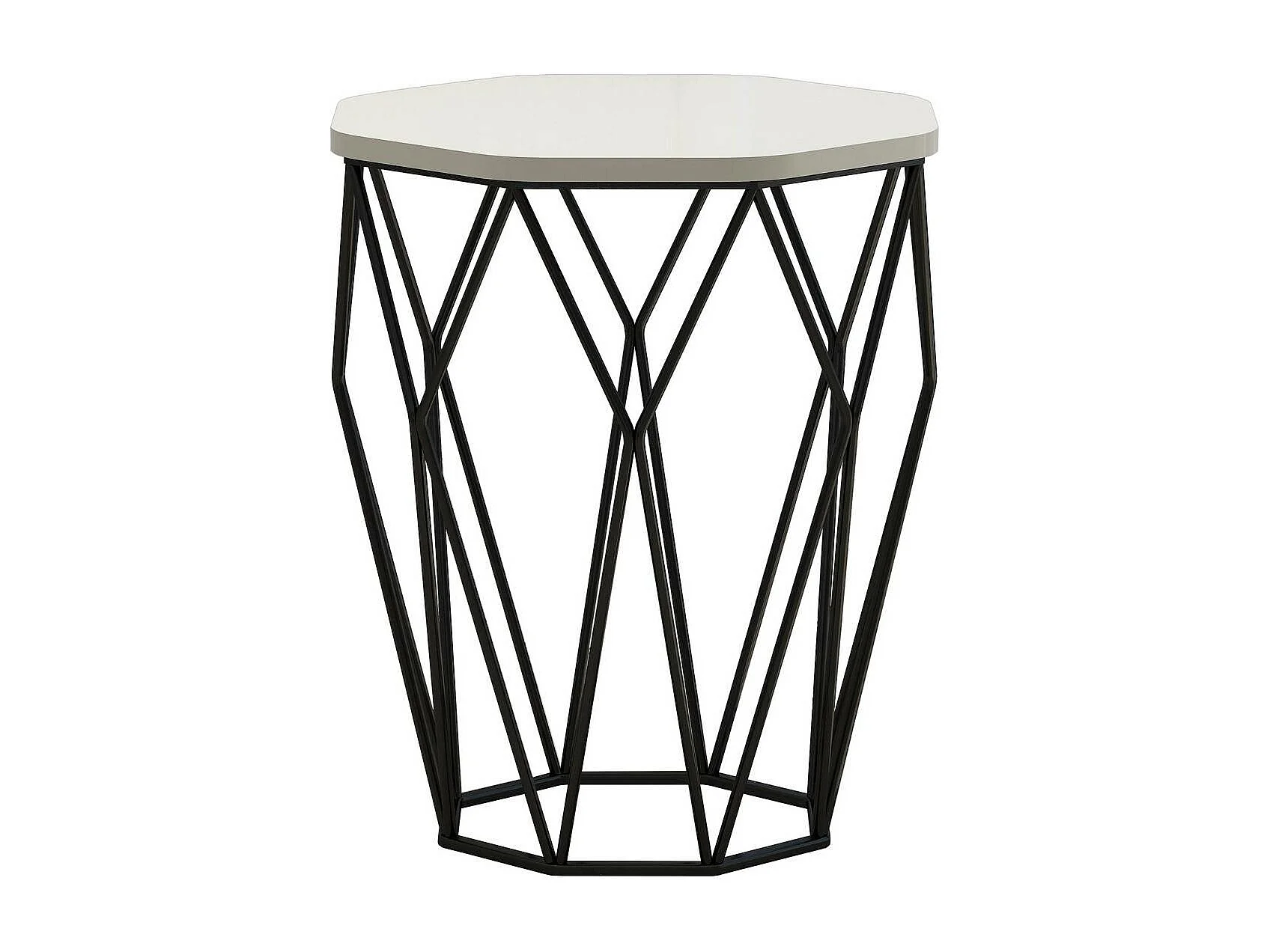 Table Heptagone Zachem Panneau Métal Noir et Bois Blanc Blanc créme