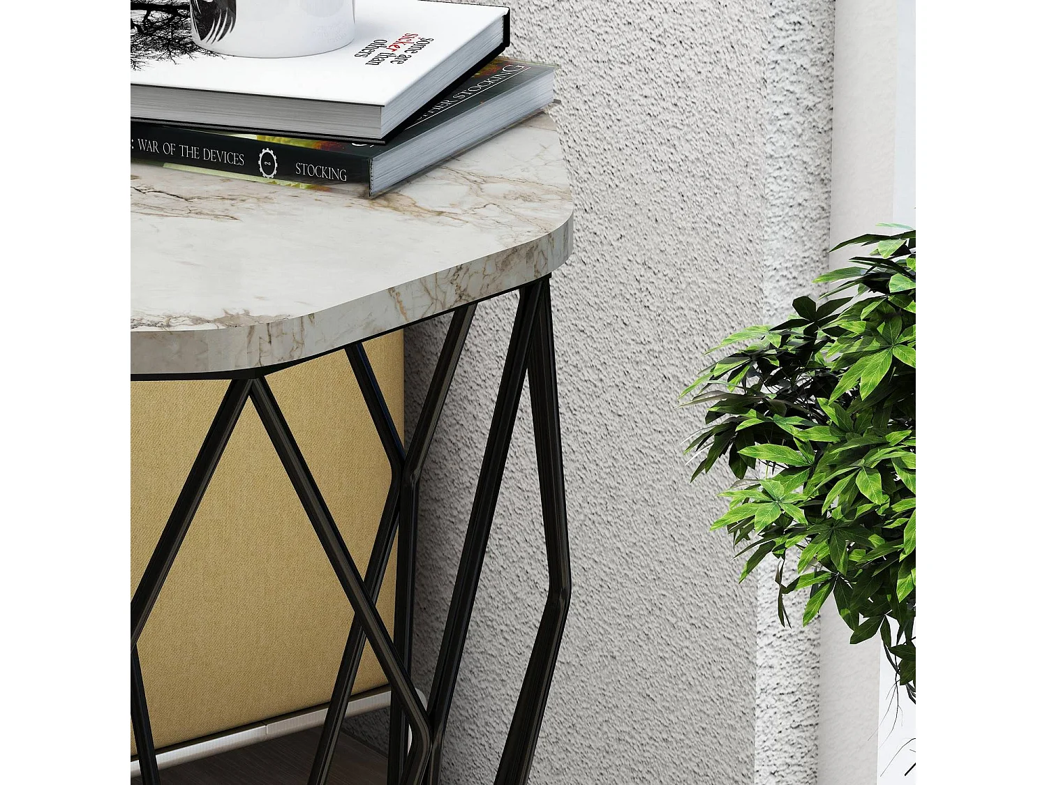 Table d'appoint hexagonale Supellex Bois Marbre Blanc et Métal Noir