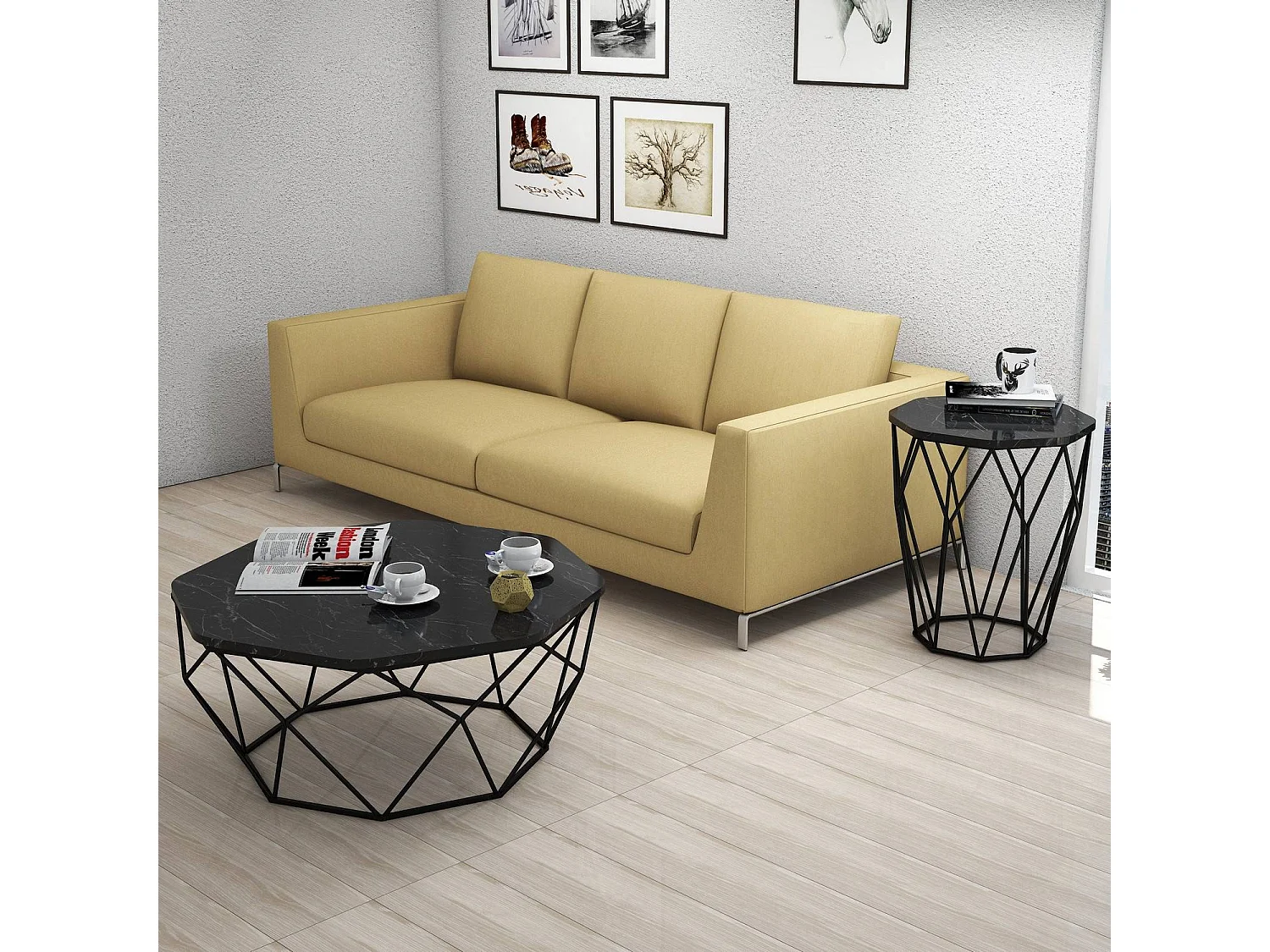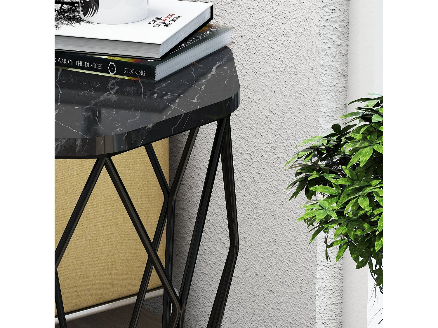 Table d'appoint hexagonale Supellex Bois Marbre Noir et Métal Noir