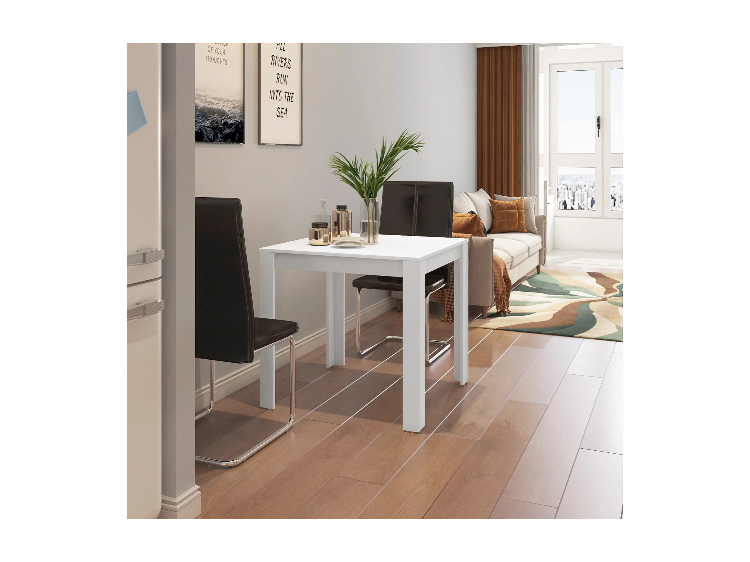 Lynn|Table à manger en mélaminé blanc 4 personnes L80