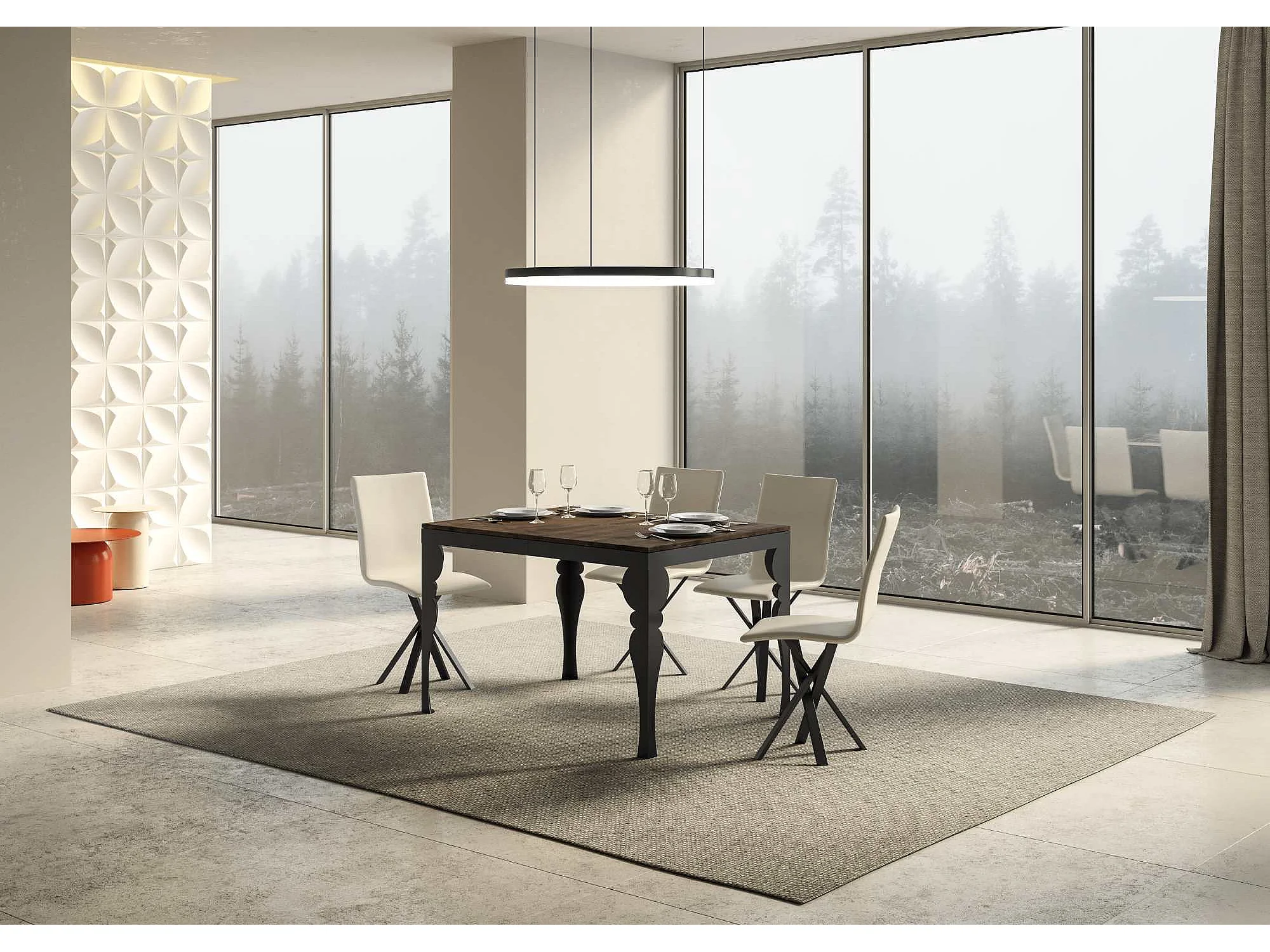 Table extensible 200/460x90 cm Flame noyer pieds anthracite