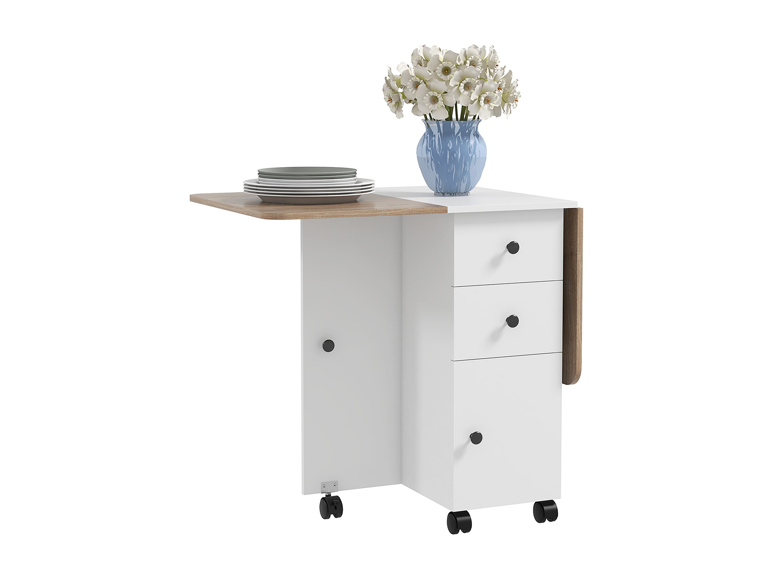 Table pliable de cuisine salle à manger - 2 tiroirs, placard, niche - panneaux aspect bois chêne blanc