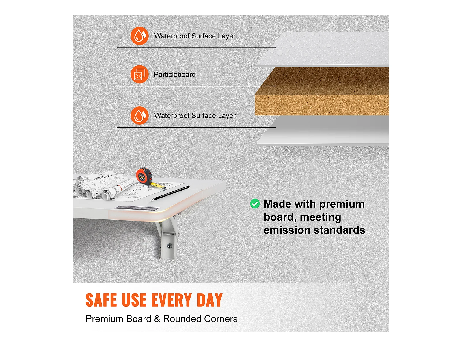 Table Pliante Murale SucceBuy, Bureau pour Ordinateur Portable, 800 x 600 mm, pour Bureau à Domicile, Blanc