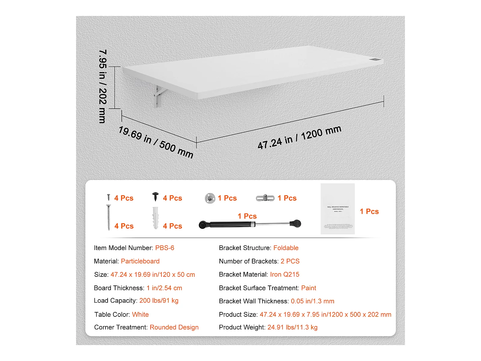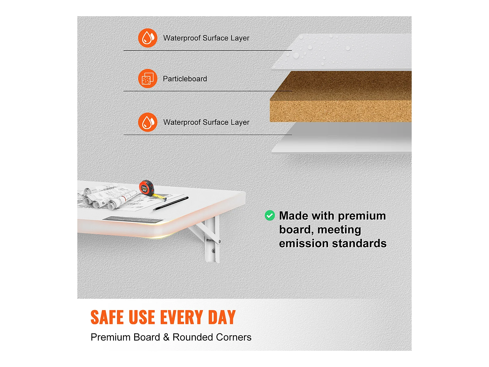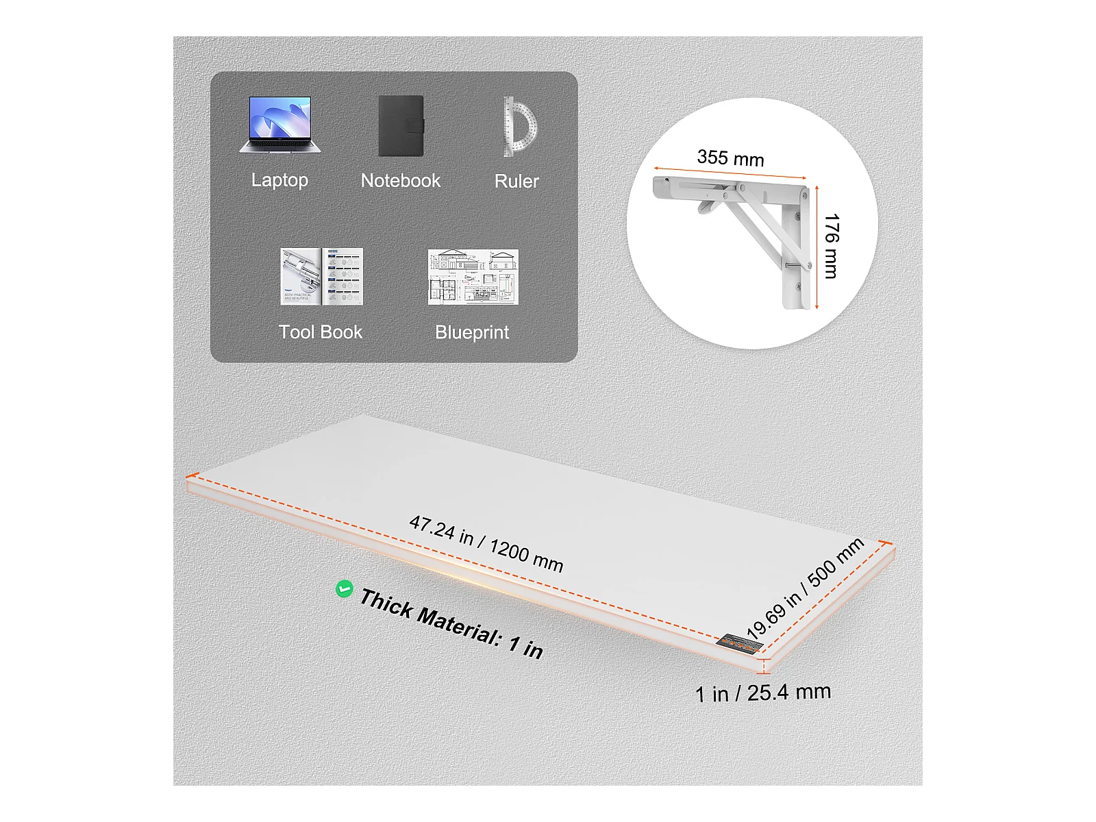 Table pliante murale SucceBuy, Bureau pour Ordinateur portable, Bureau à domicile, 120x50cm, Blanc