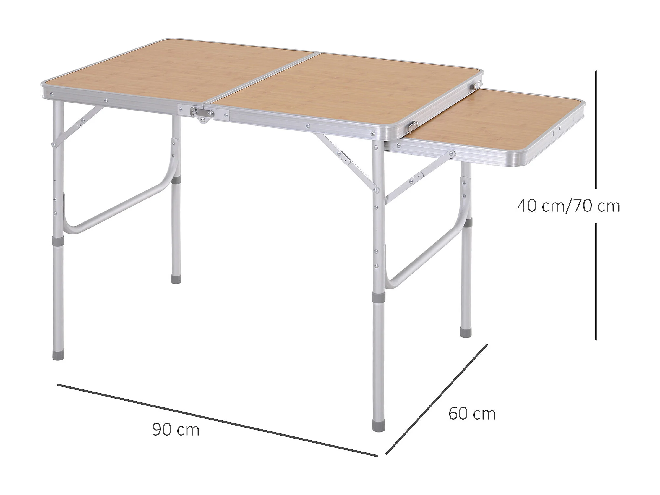 Table pliante table de camping table de jardin avec rallonge hauteur réglable aluminium MDF imitation bambou