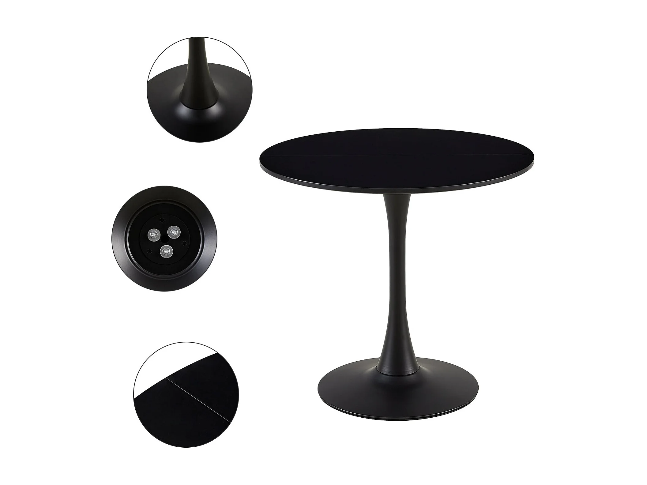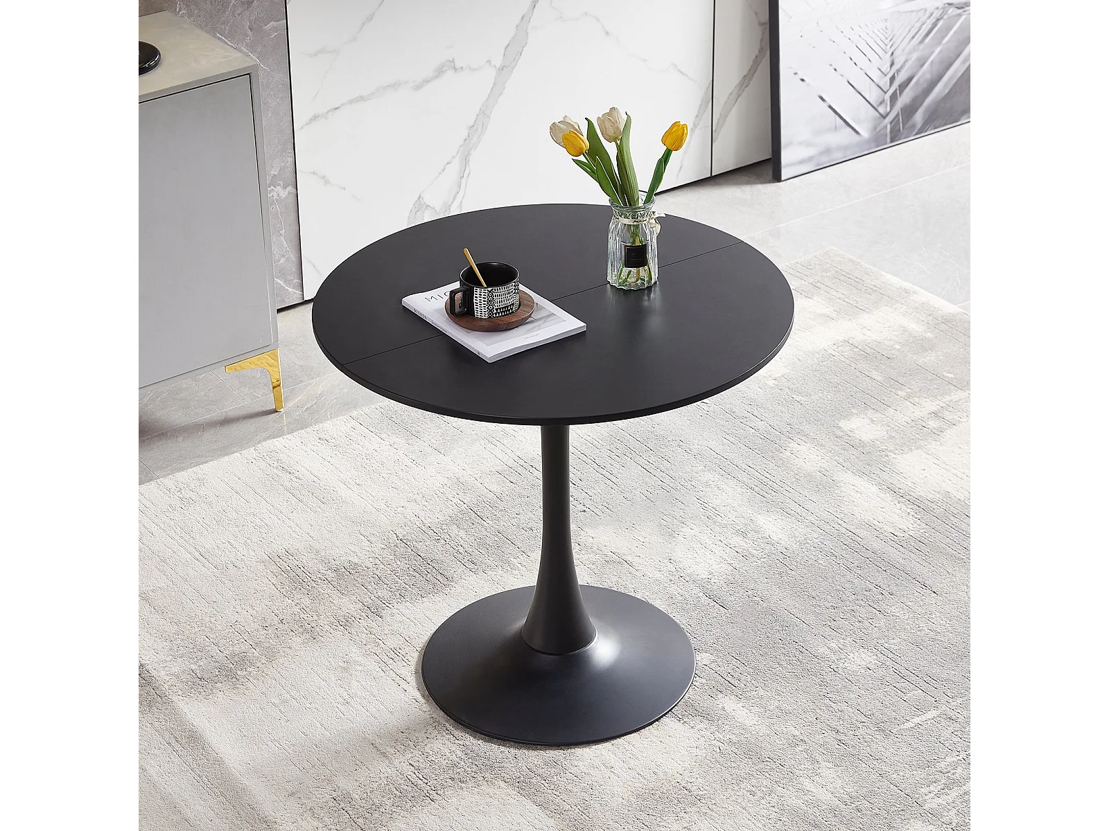 Table à Manger Ronde Mid Century Moderne, Table Basse Minimaliste Noir, Pour Salle à Manger, Salon, Chambre, Bureau, Café