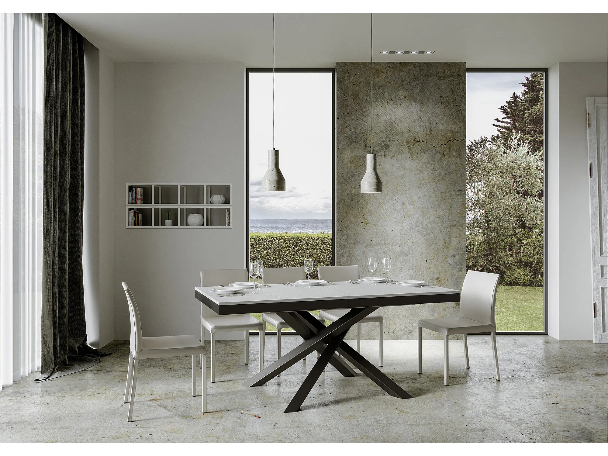 Table extensible 200/304x90 cm Flame frêne blanc pieds anthracite