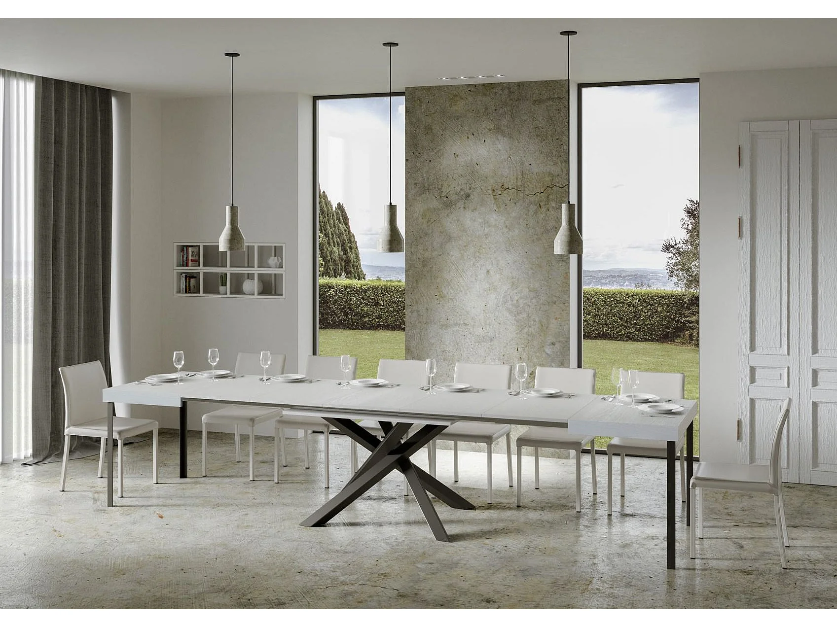 Table extensible 130/390x90 cm Volantis frêne blanc pieds anthracite