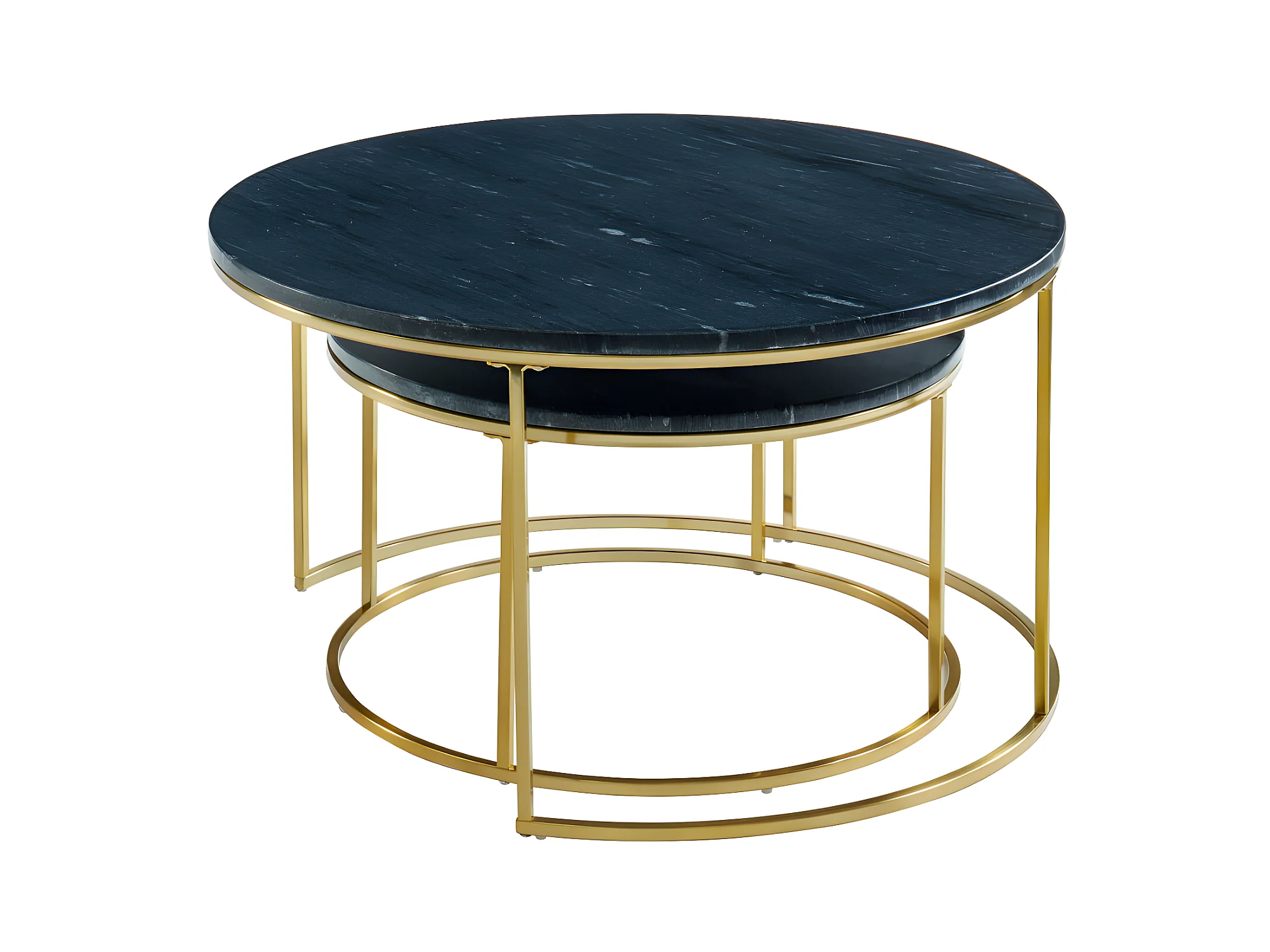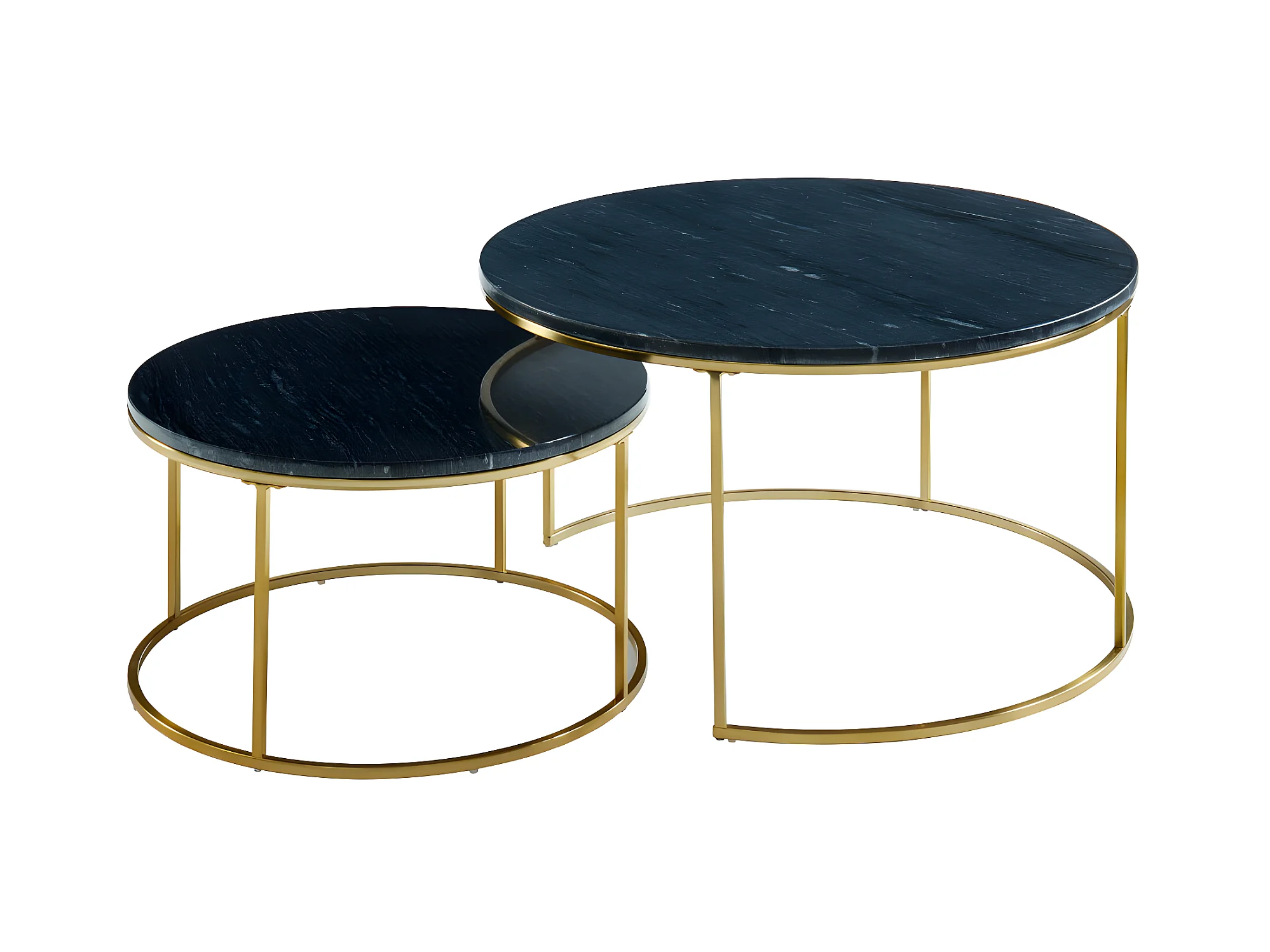 Tables basses gigognes ANGELA de Pascal MORABITO - Marbre noir et métal doré