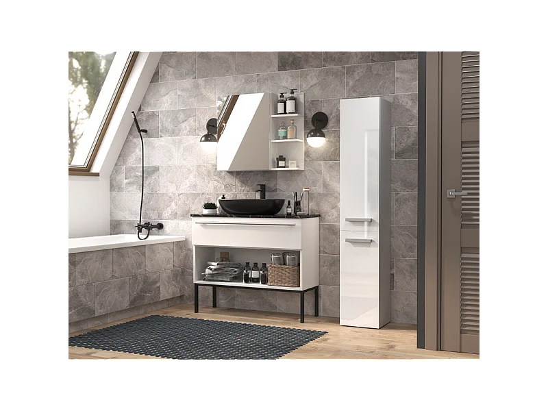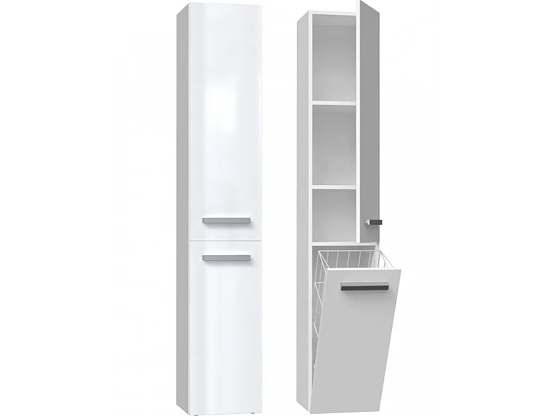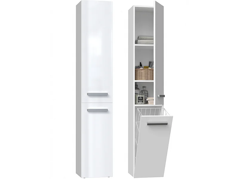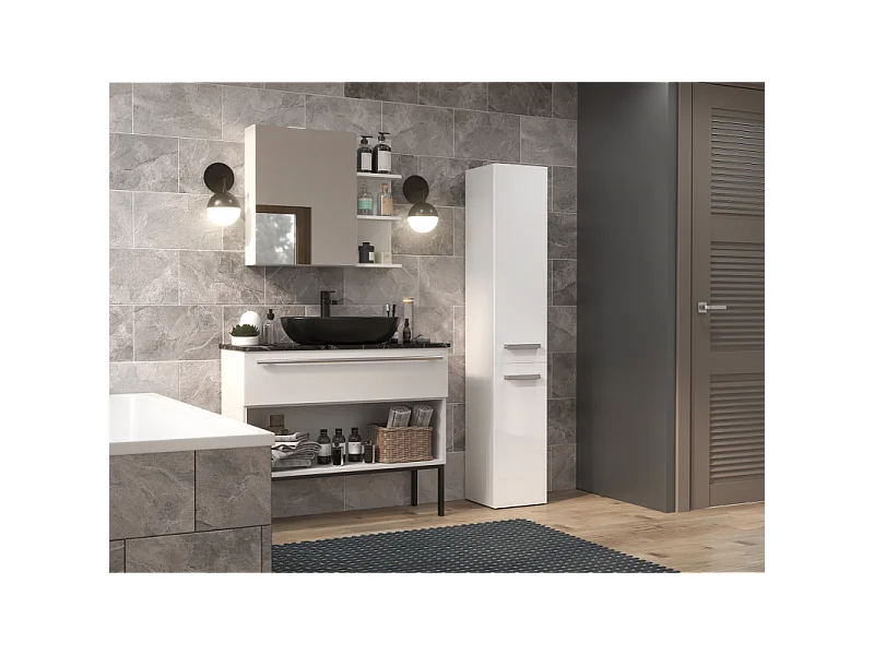 Meuble colonne salle de bain blanc brillant 2 portes 1 tiroir Kinzo 30cm