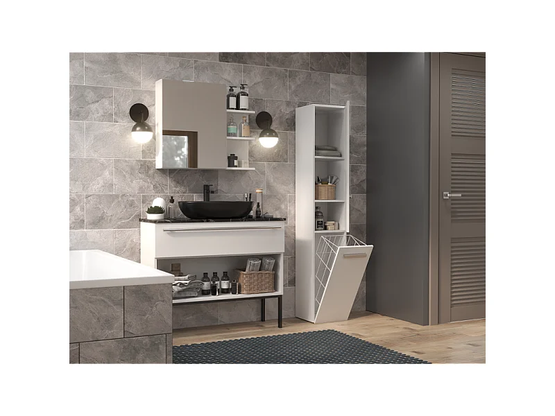 Petite colonne de rangement multifonctions blanche 1 porte Lika 45cm