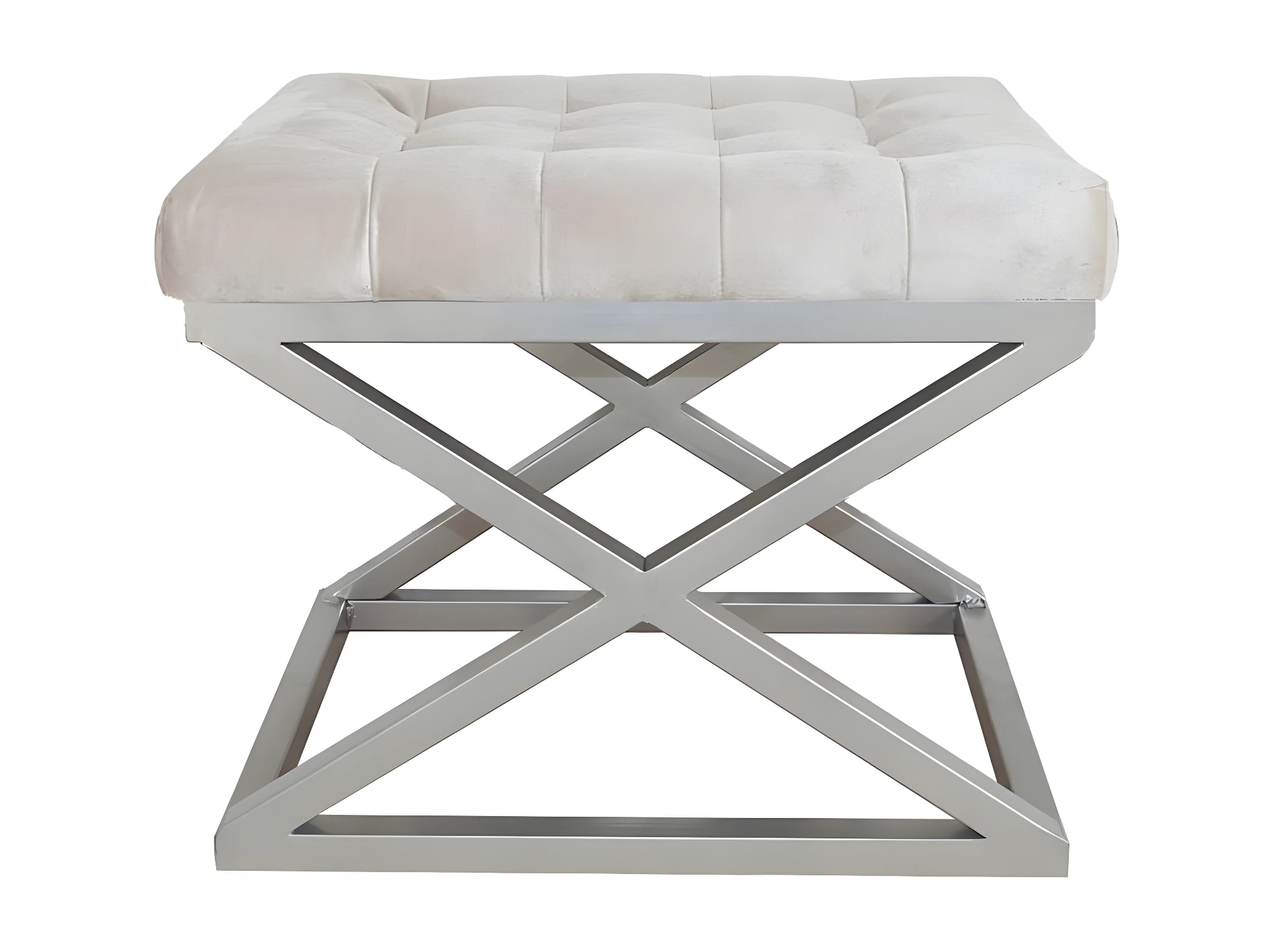 Tabouret assise capitonnée Ulad Métal Argent et Velours Blanc sale