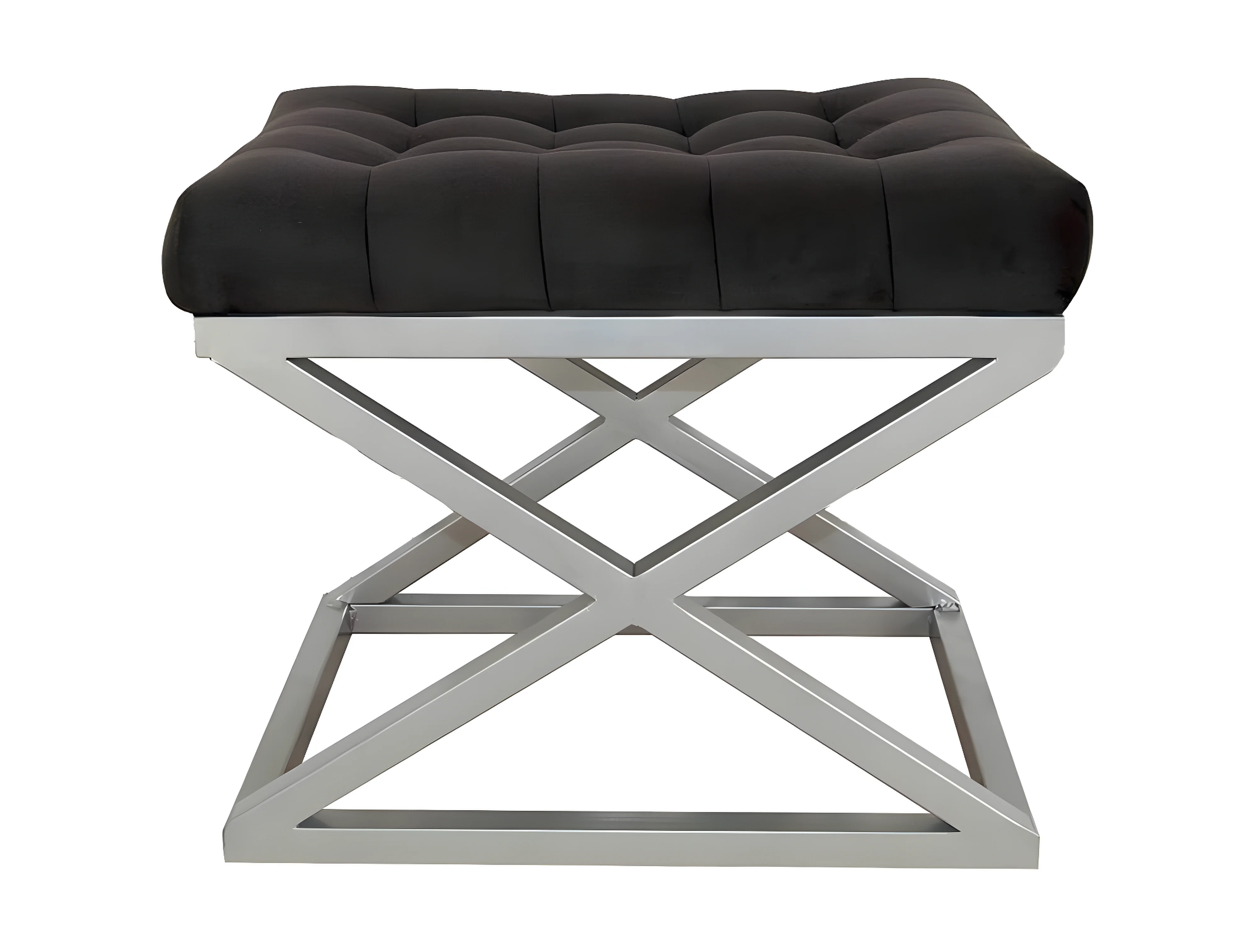 Tabouret assise capitonnée Ulad Métal Argent et Velours Noir
