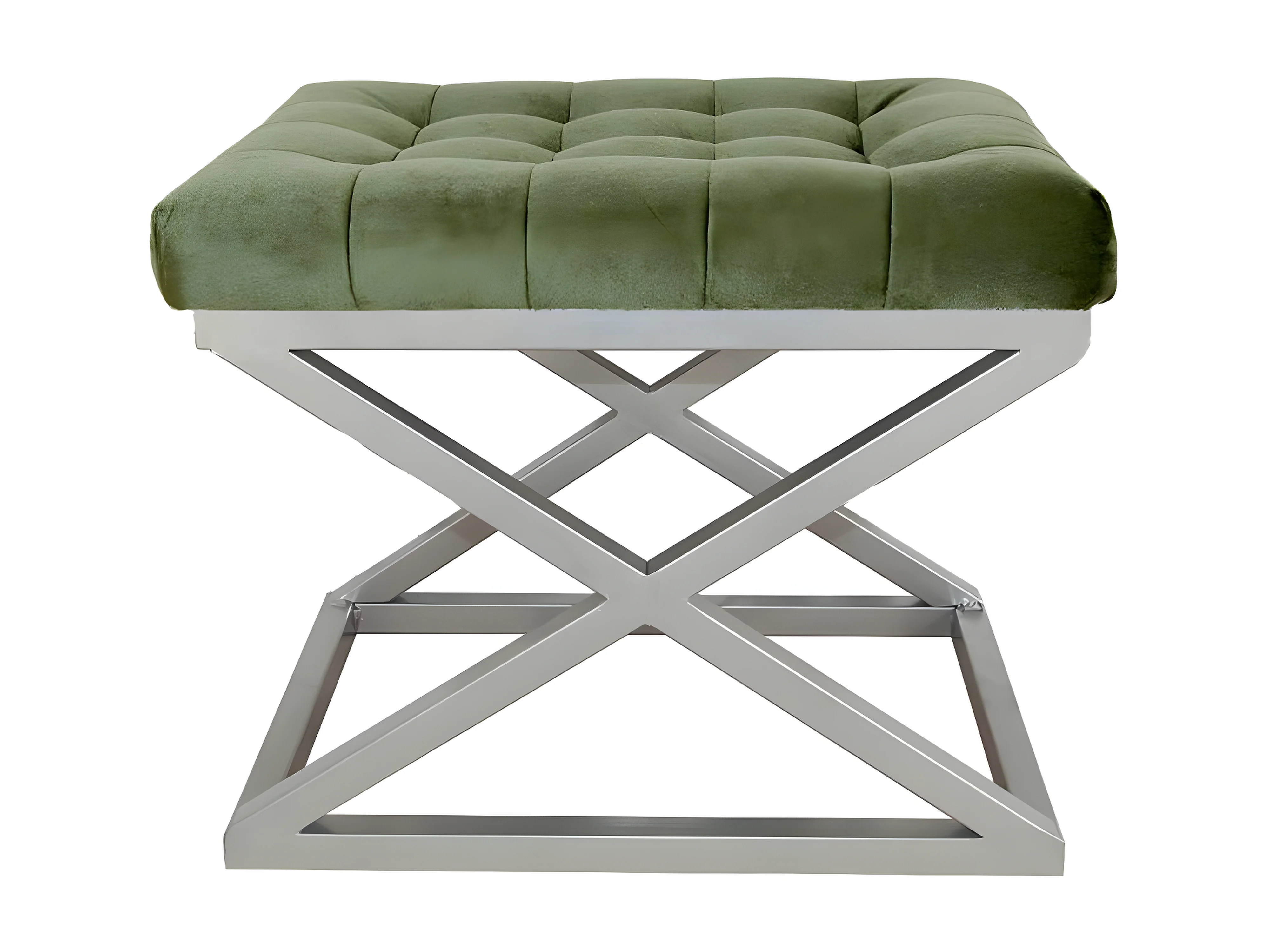 Tabouret assise capitonnée Ulad Métal Argent et Velours Vert foncé