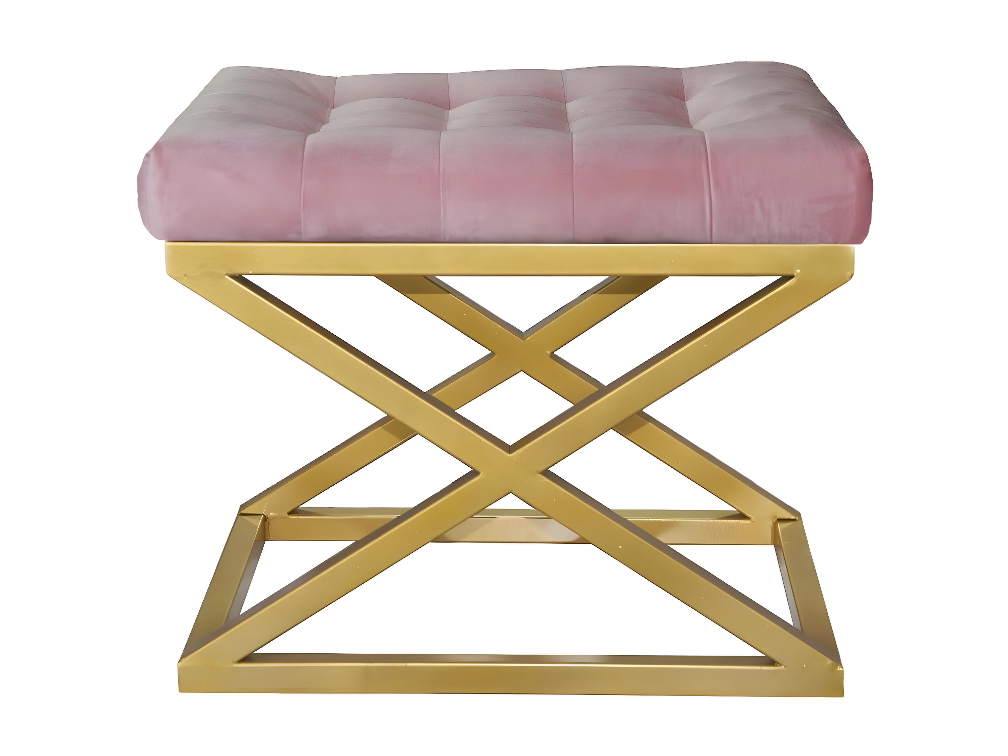 Tabouret assise capitonnée Ulad Métal Or et Velours Rose
