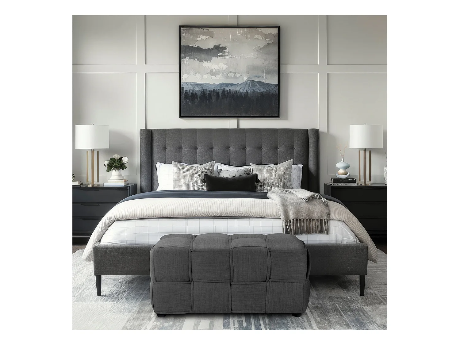 Banc coffre de rangement 2 en 1 dim. 102L x 40l x 39H cm piètement acier noir tissu gris