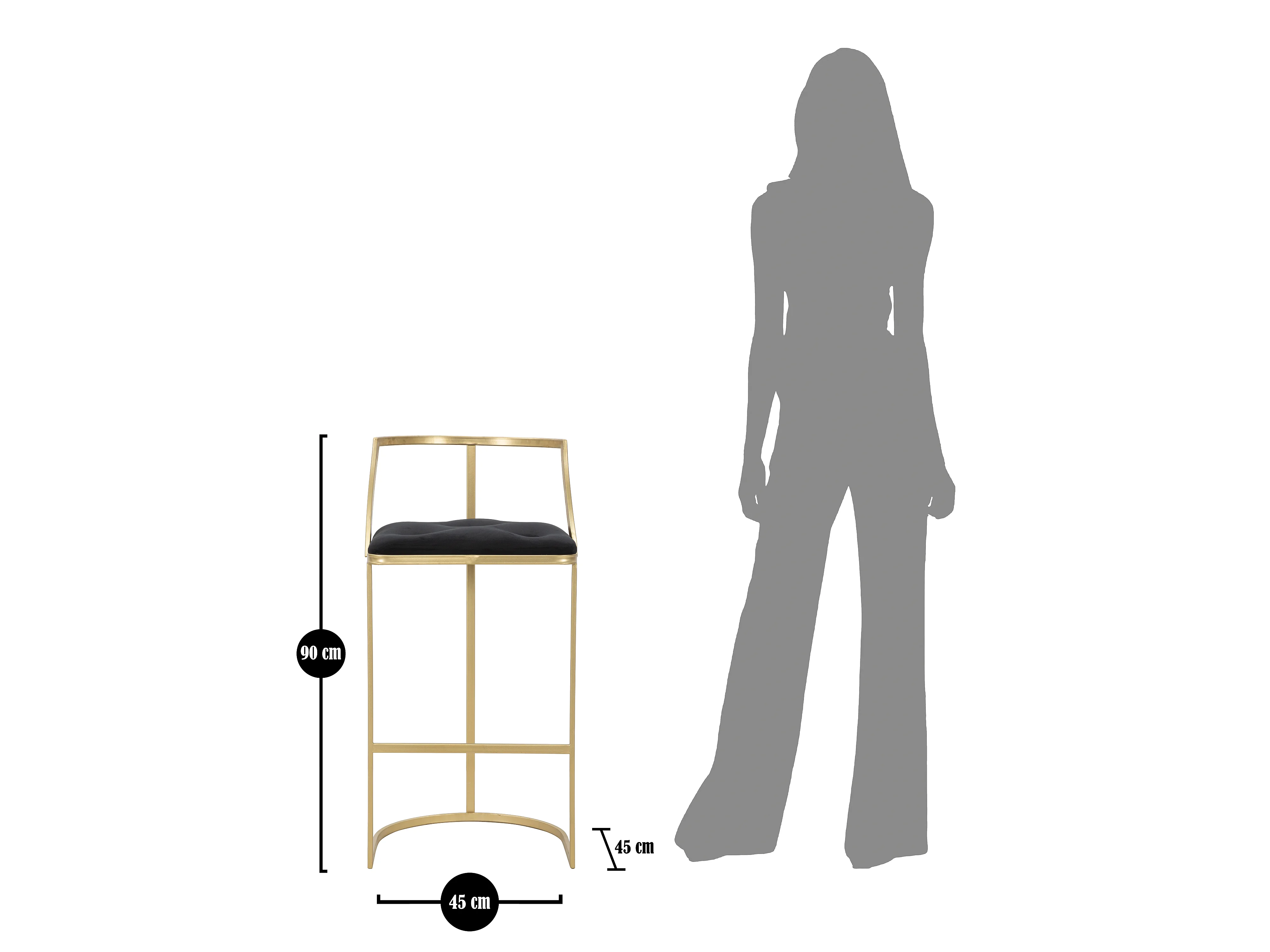 Tabouret de Bar en Velours "Istanbul" 90cm Noir & Or
