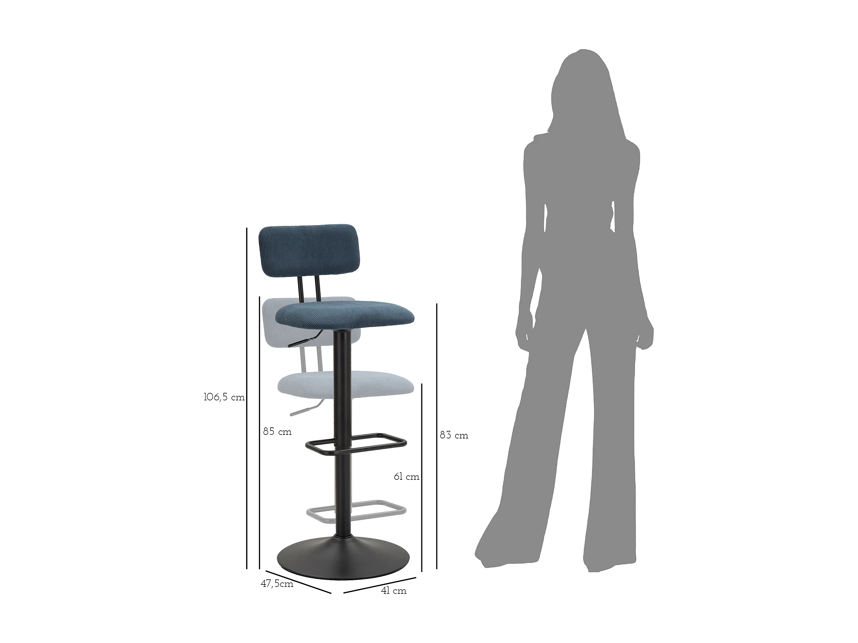 Lot de 2 Chaises de Bar Réglable "Destiny" 85-106cm Noir & Bleu