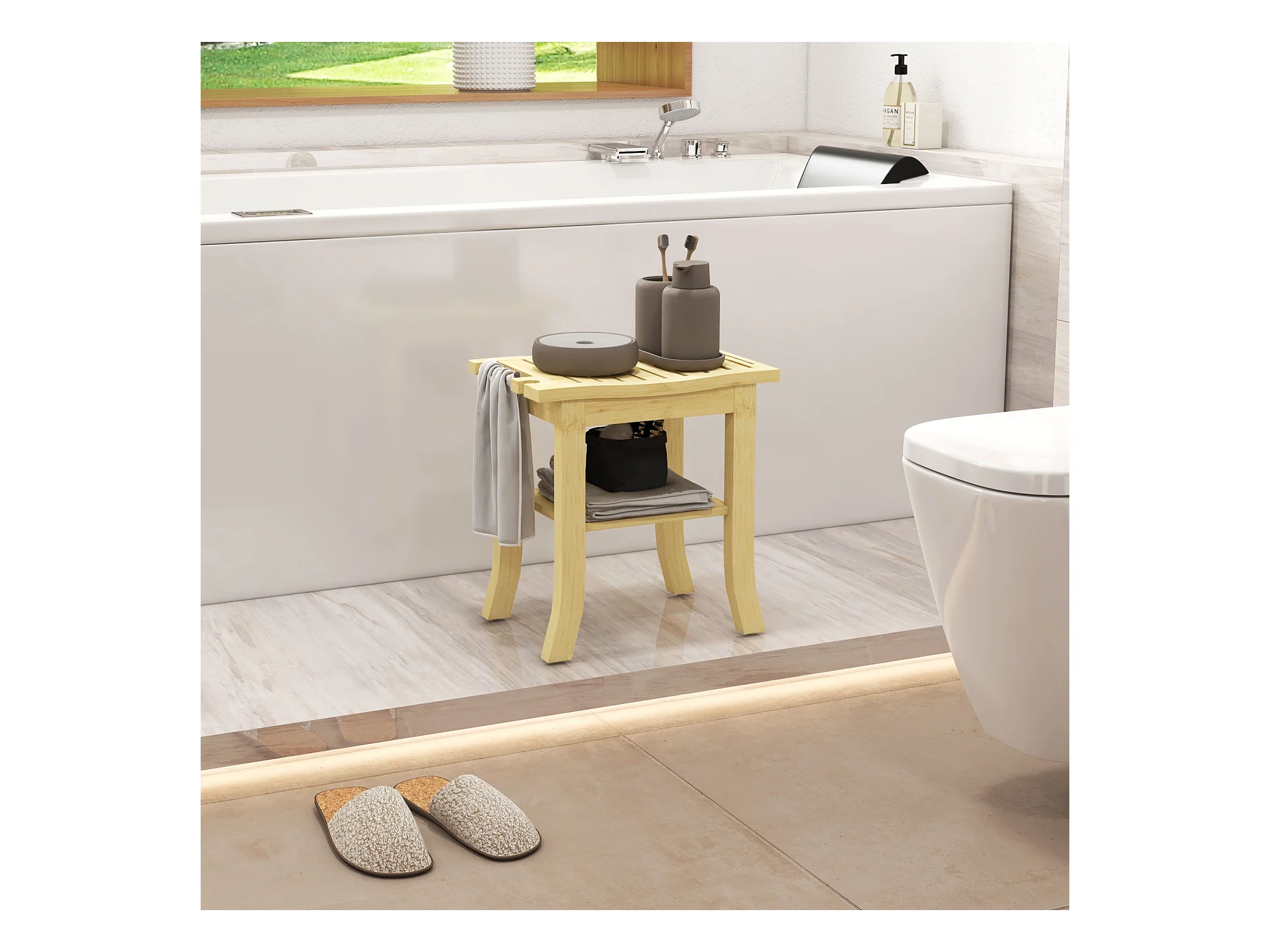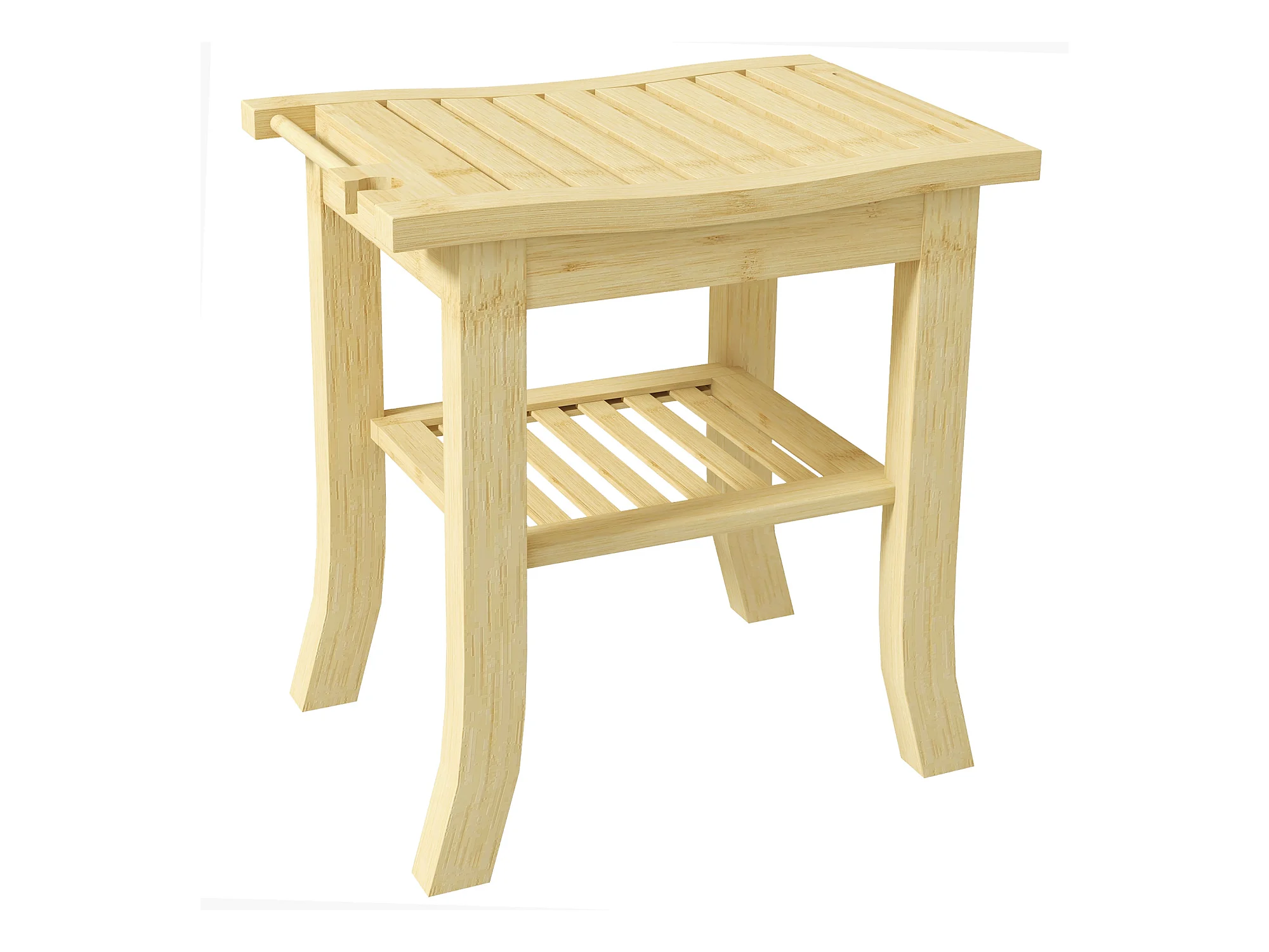 Tabouret de douche - étagère, porte-serviettes - dim. 42L x 29l x 43H cm - bambou verni
