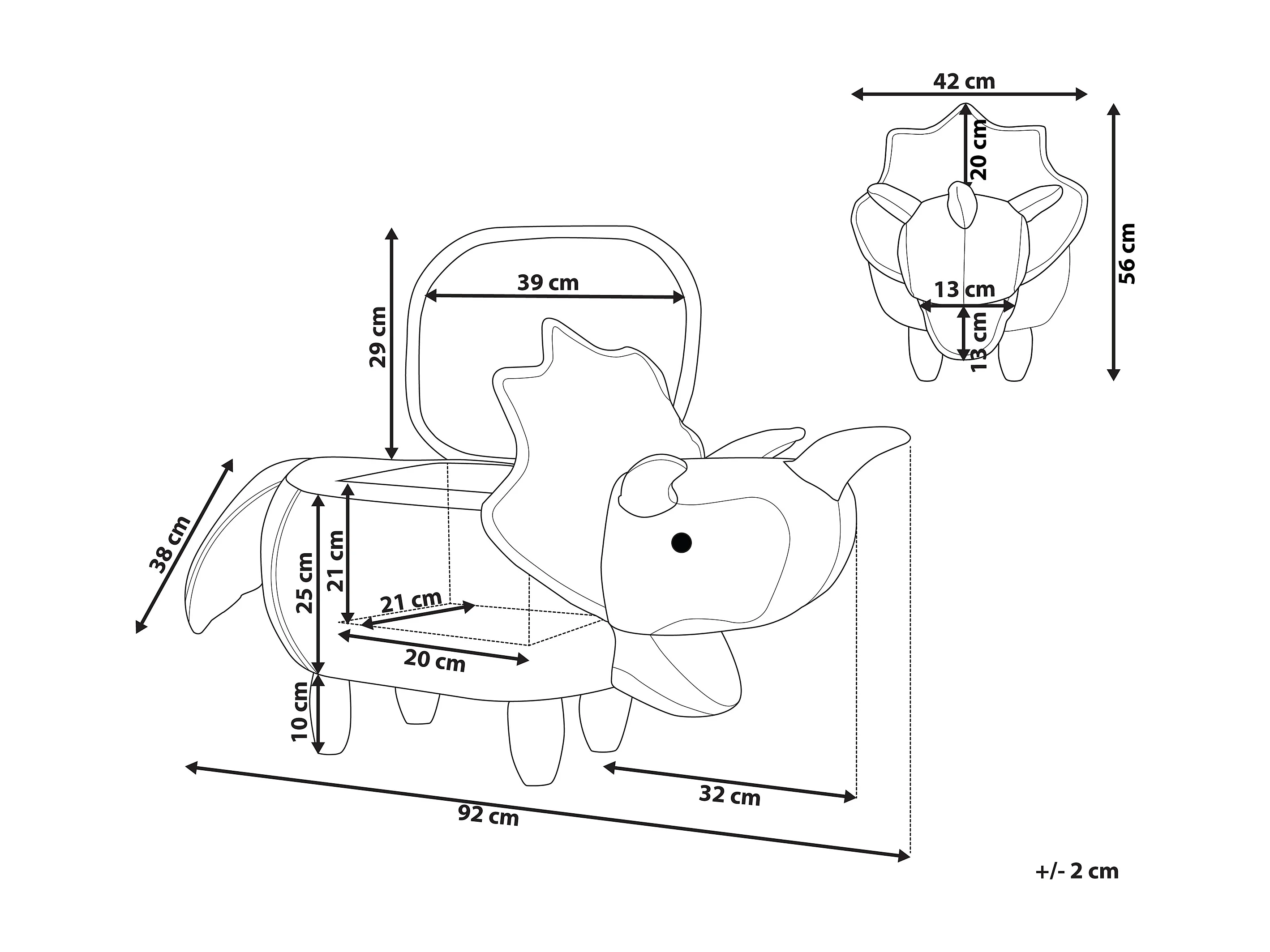 Tabouret de rangement animal TRICERATOPS Tissu Marron Dinosaure
