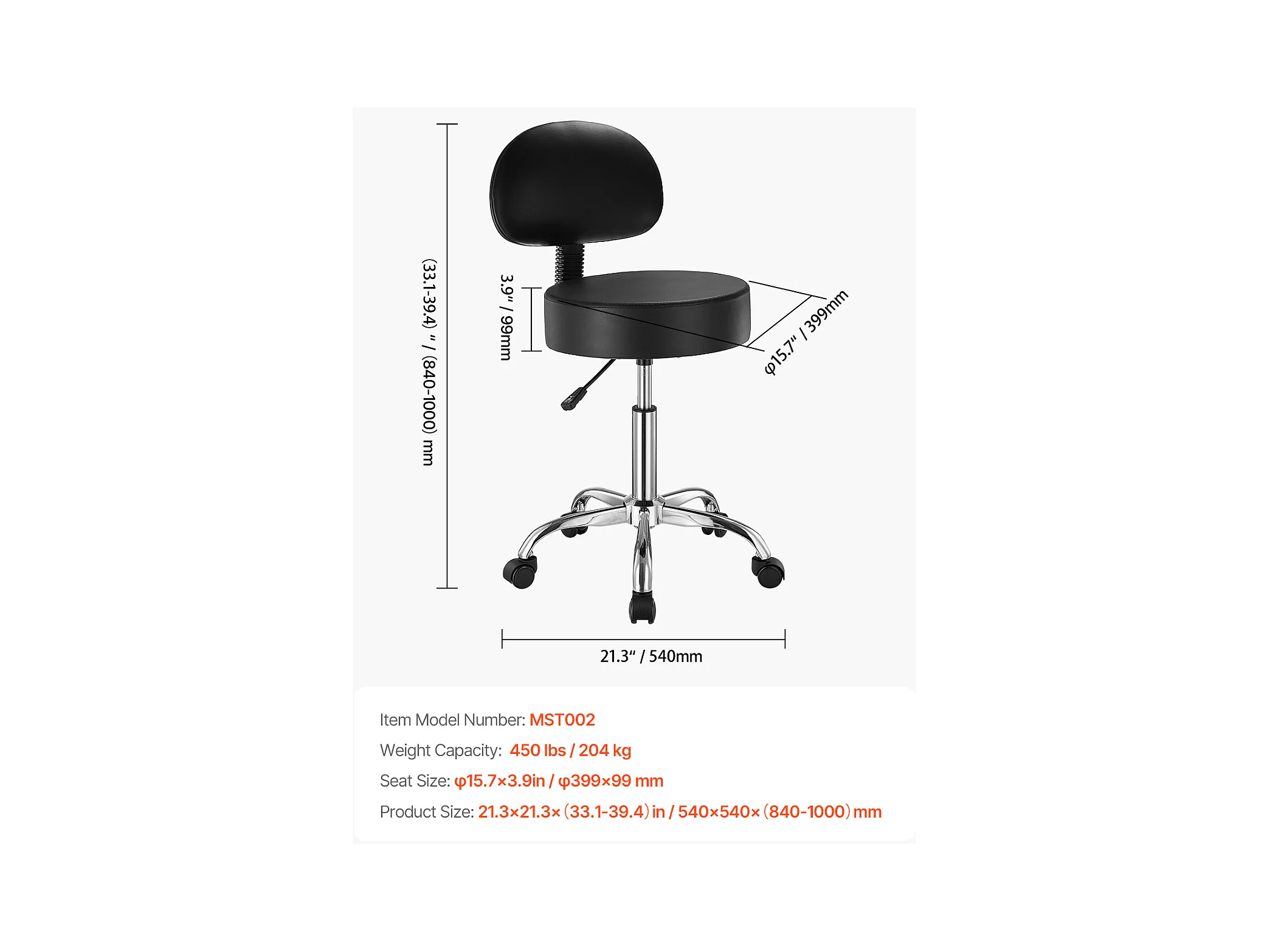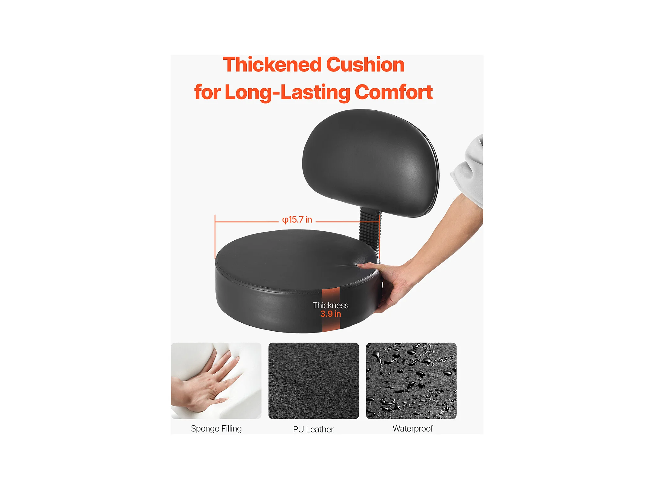Tabouret de Travail, SucceBuy Tabouret Roulant Rond avec Dossier Réglable en Hauteur Noir