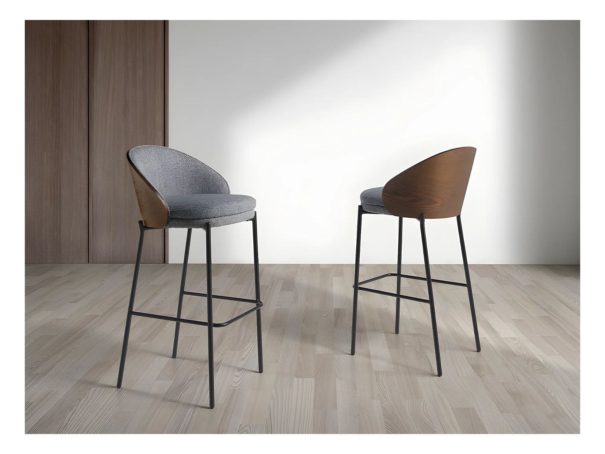 Tabouret en tissu gris et noyer 4127 ANGEL CERDA