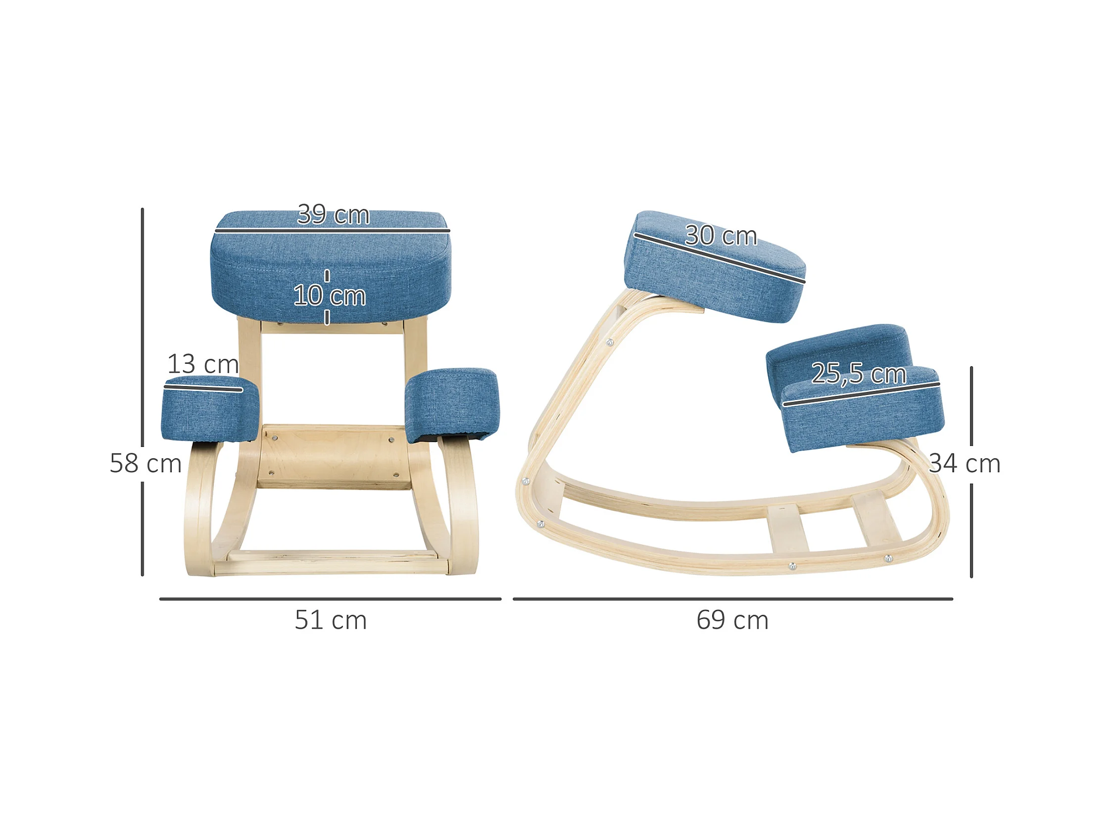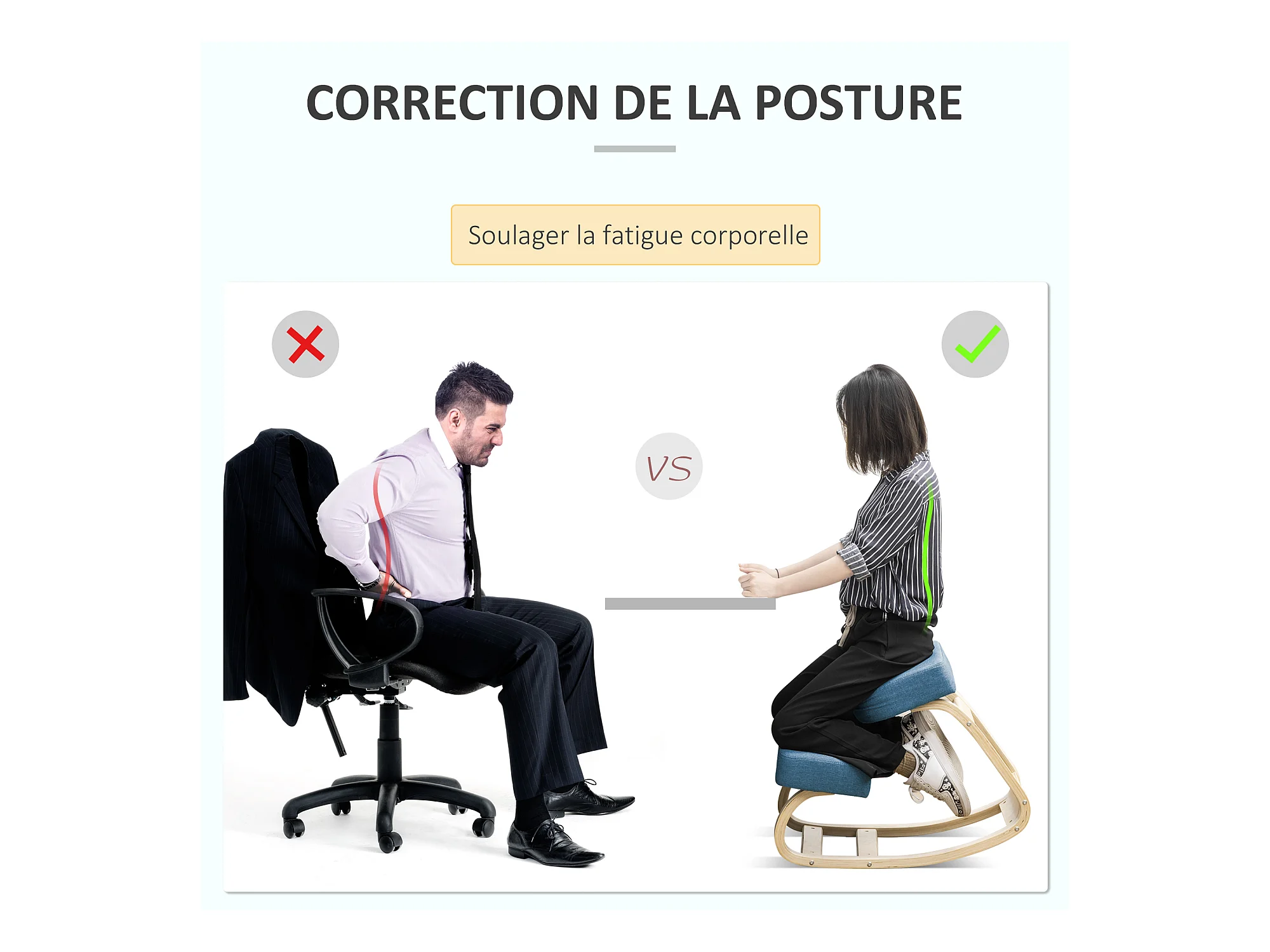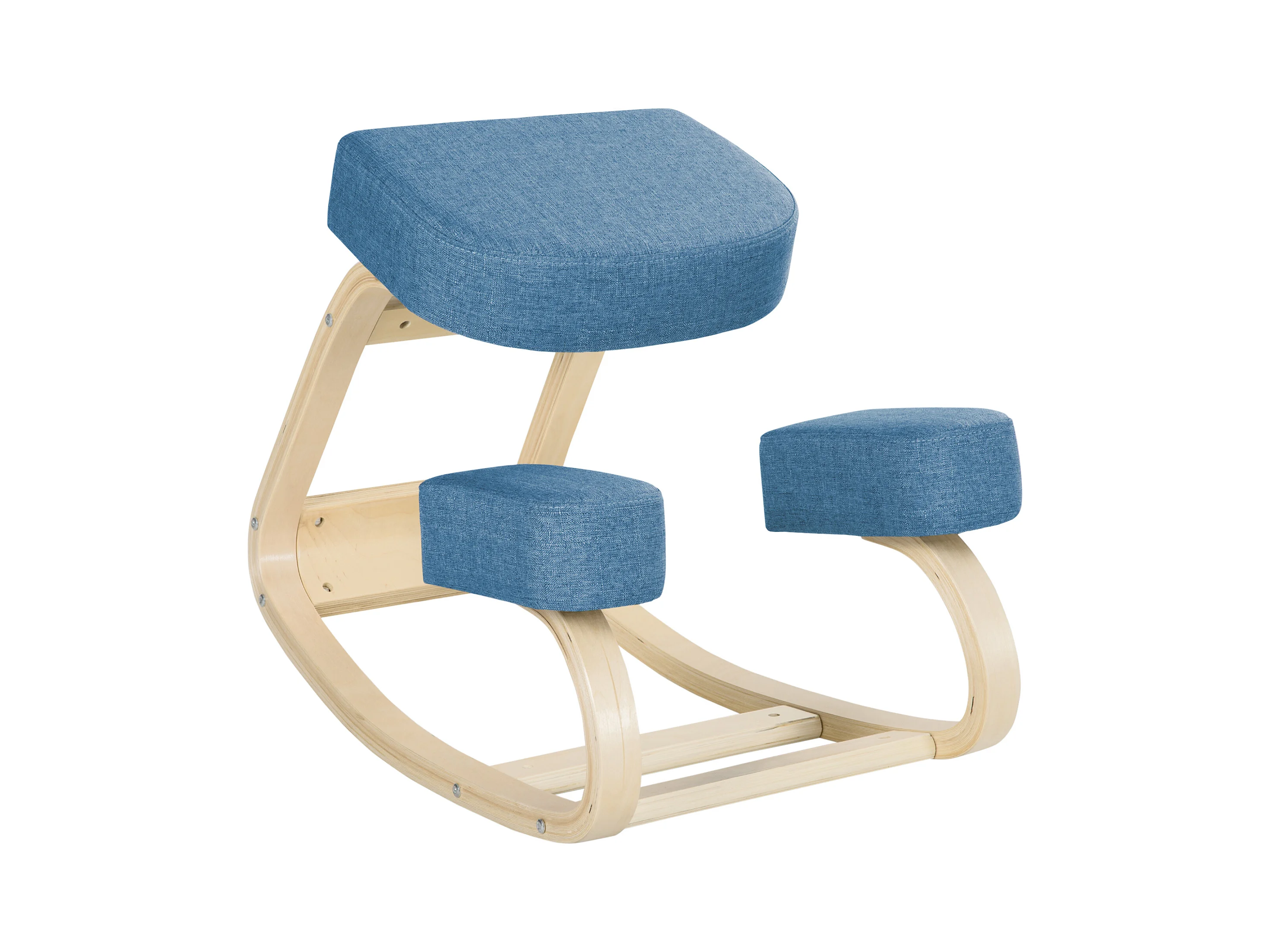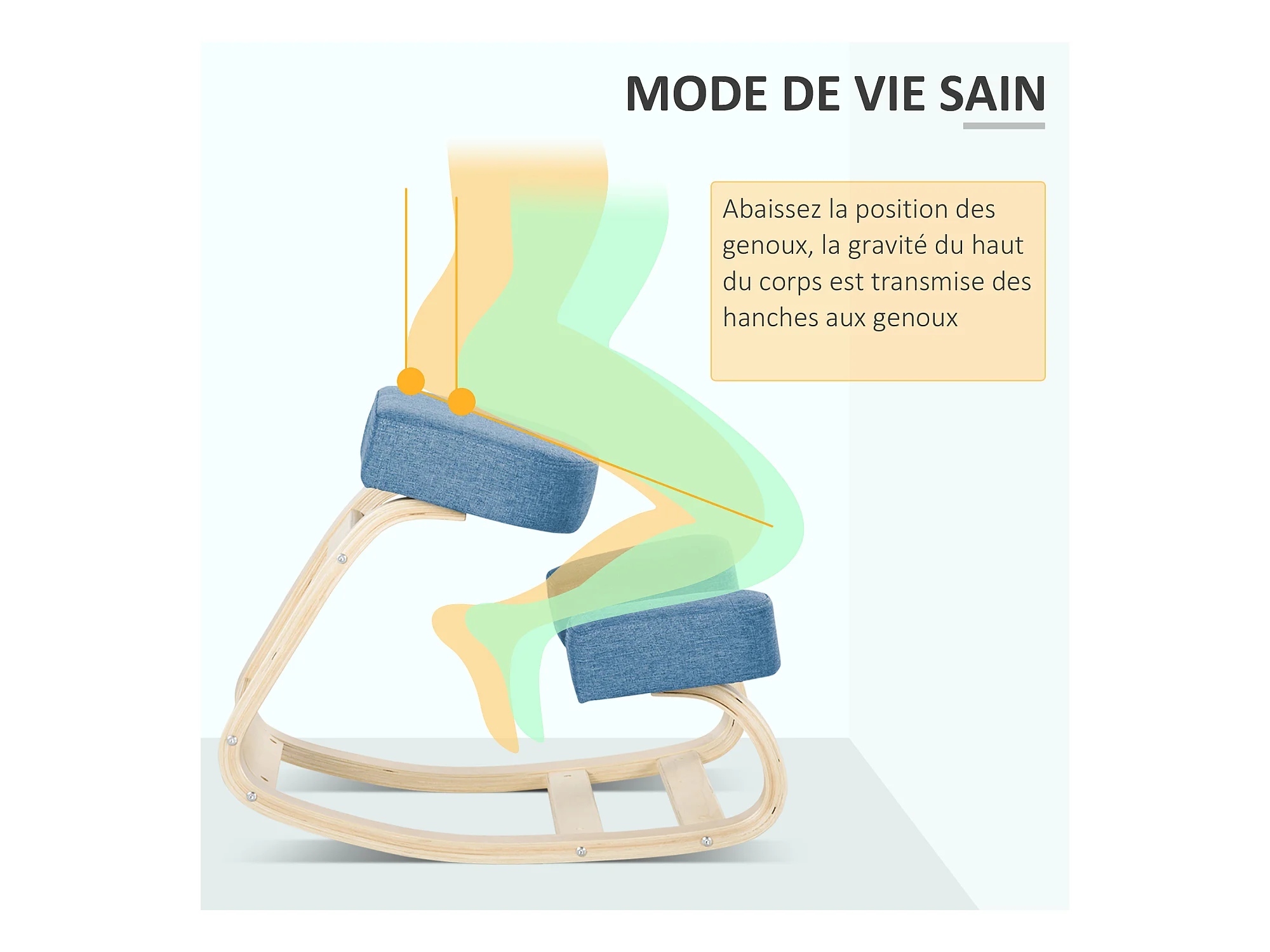 Tabouret ergonomique - siège assis à genoux - chaise à genoux grand confort - bois bouleau polyester bleu