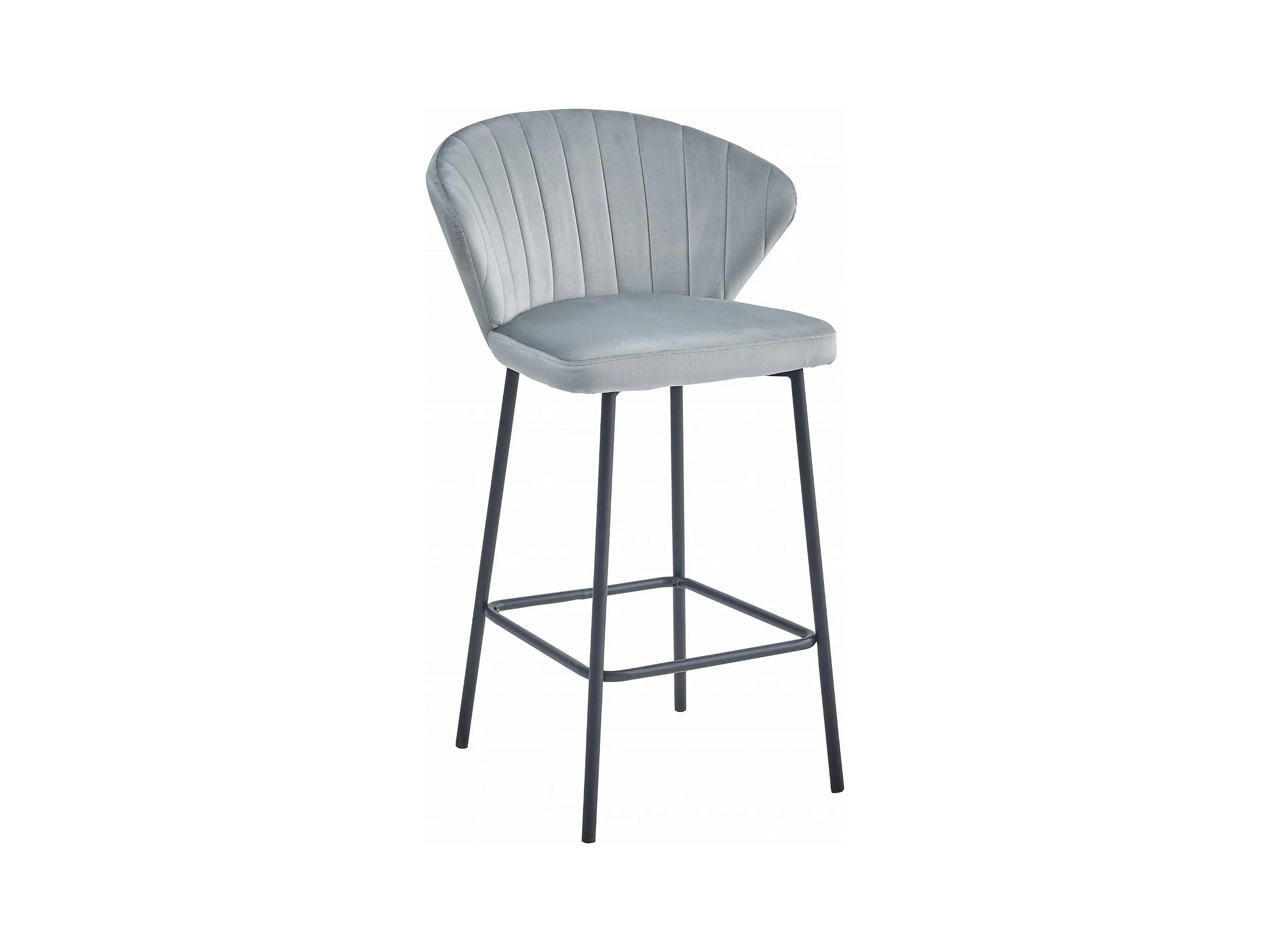 Tabouret POZZA - velours gris argenté / pieds noirs x 1