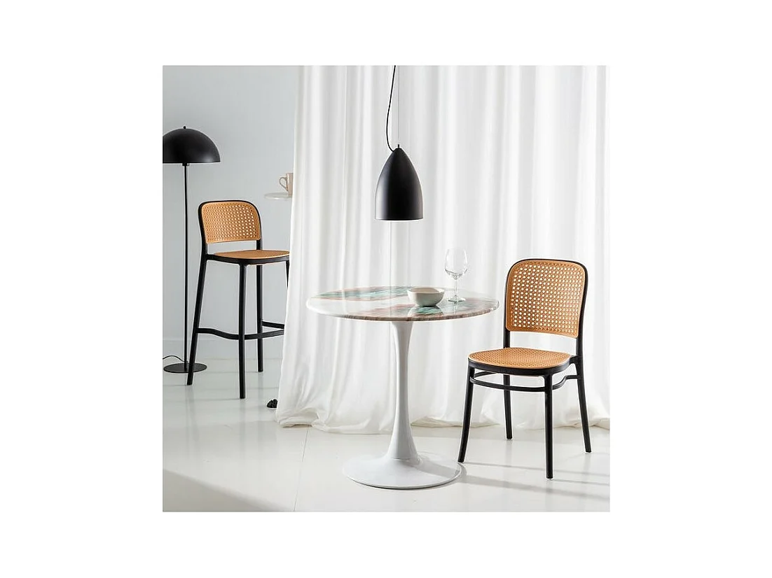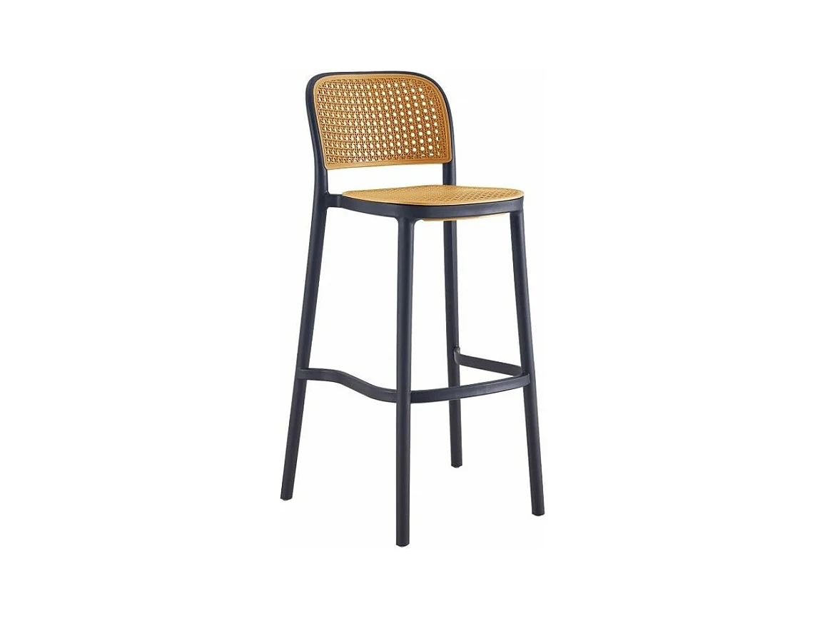 Tabouret noir et rotin synthétique naturel Skoza 75cm