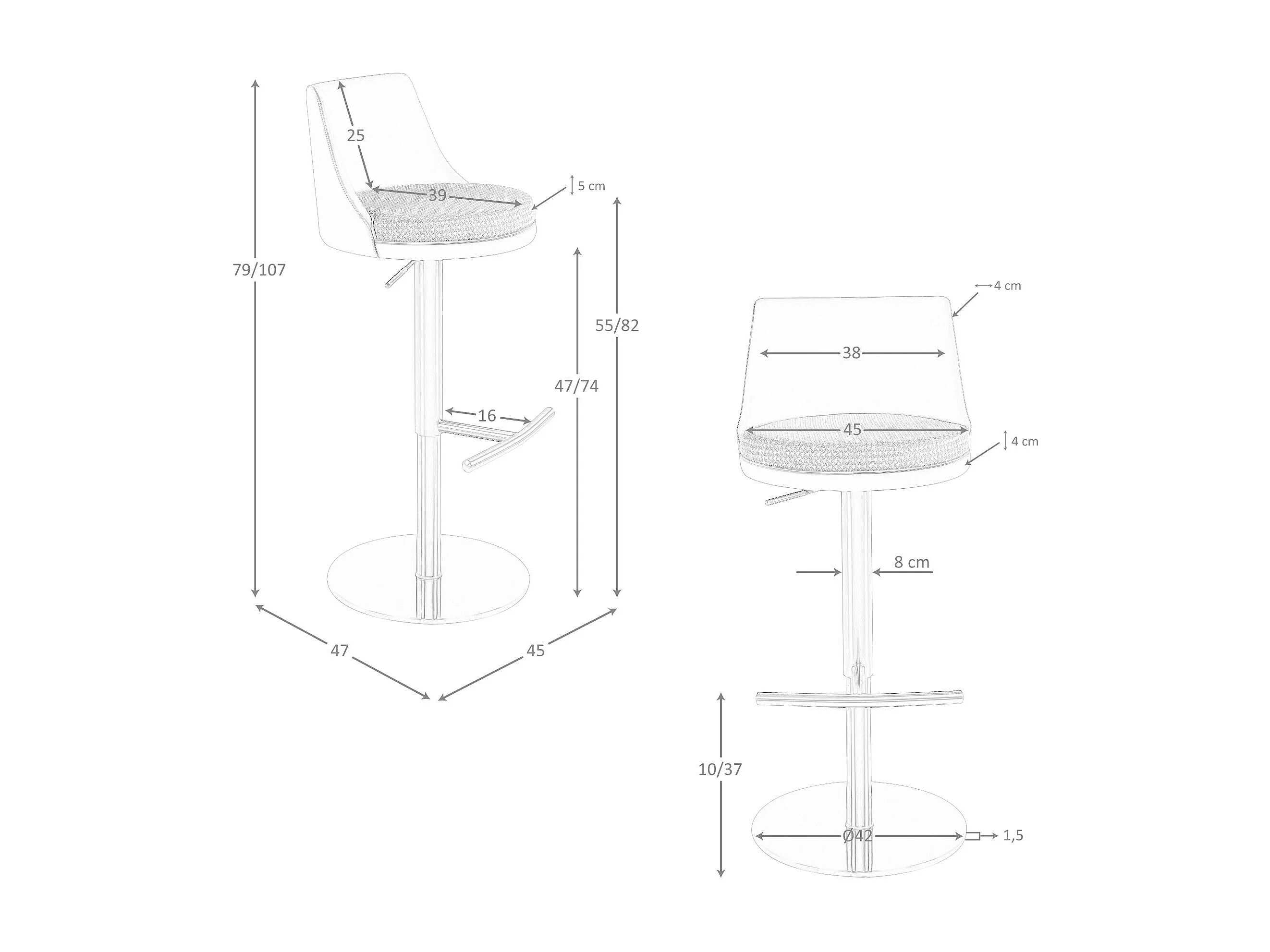 Tabouret pivotant en tissu marron terracotta et beige et similicuir marron 4229 ANGEL CERDA