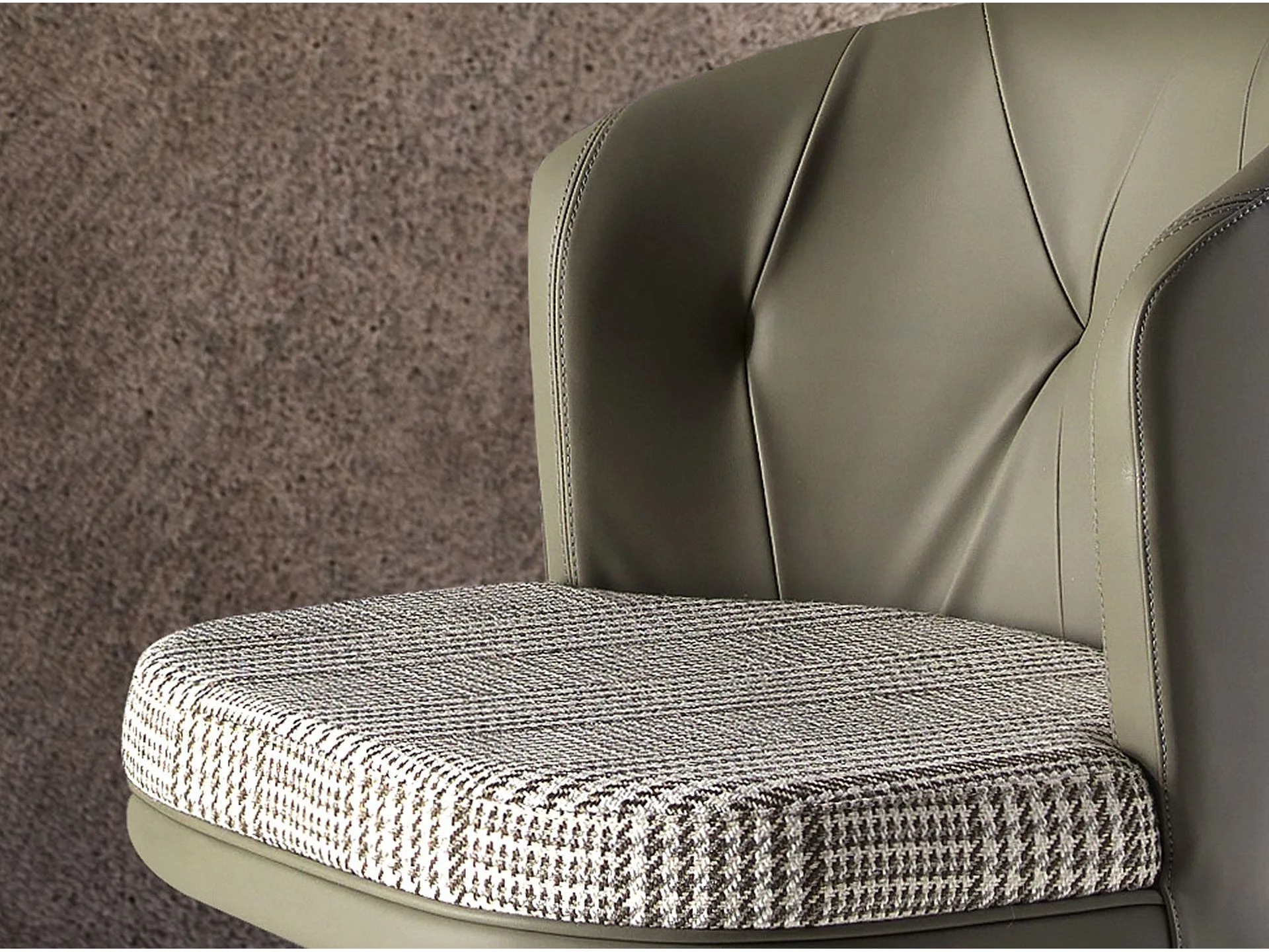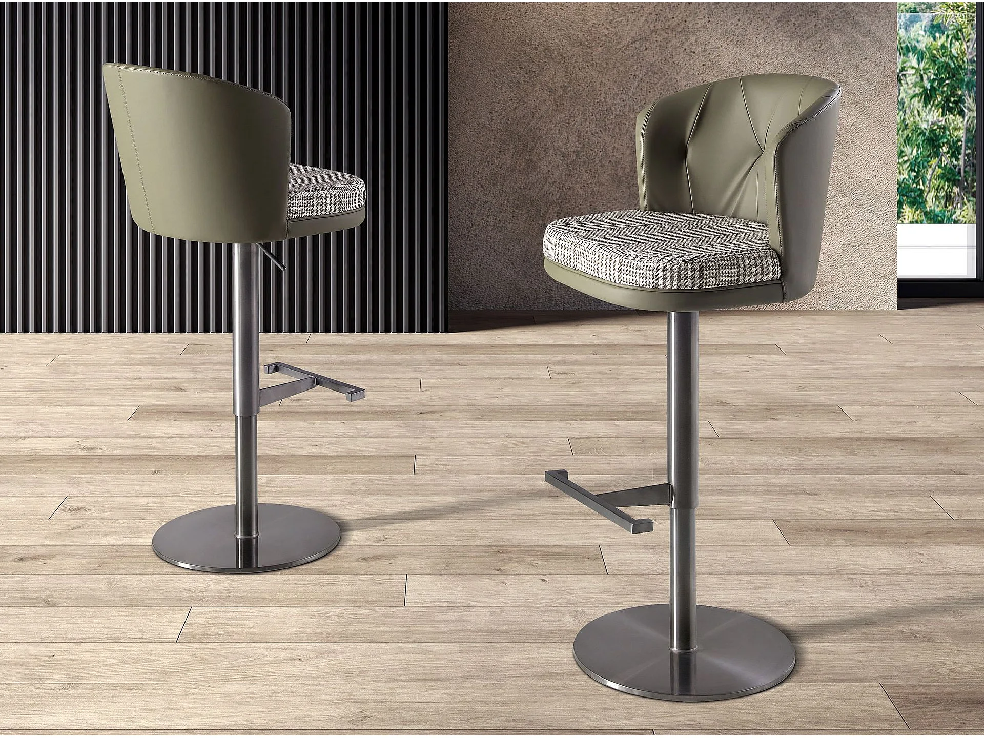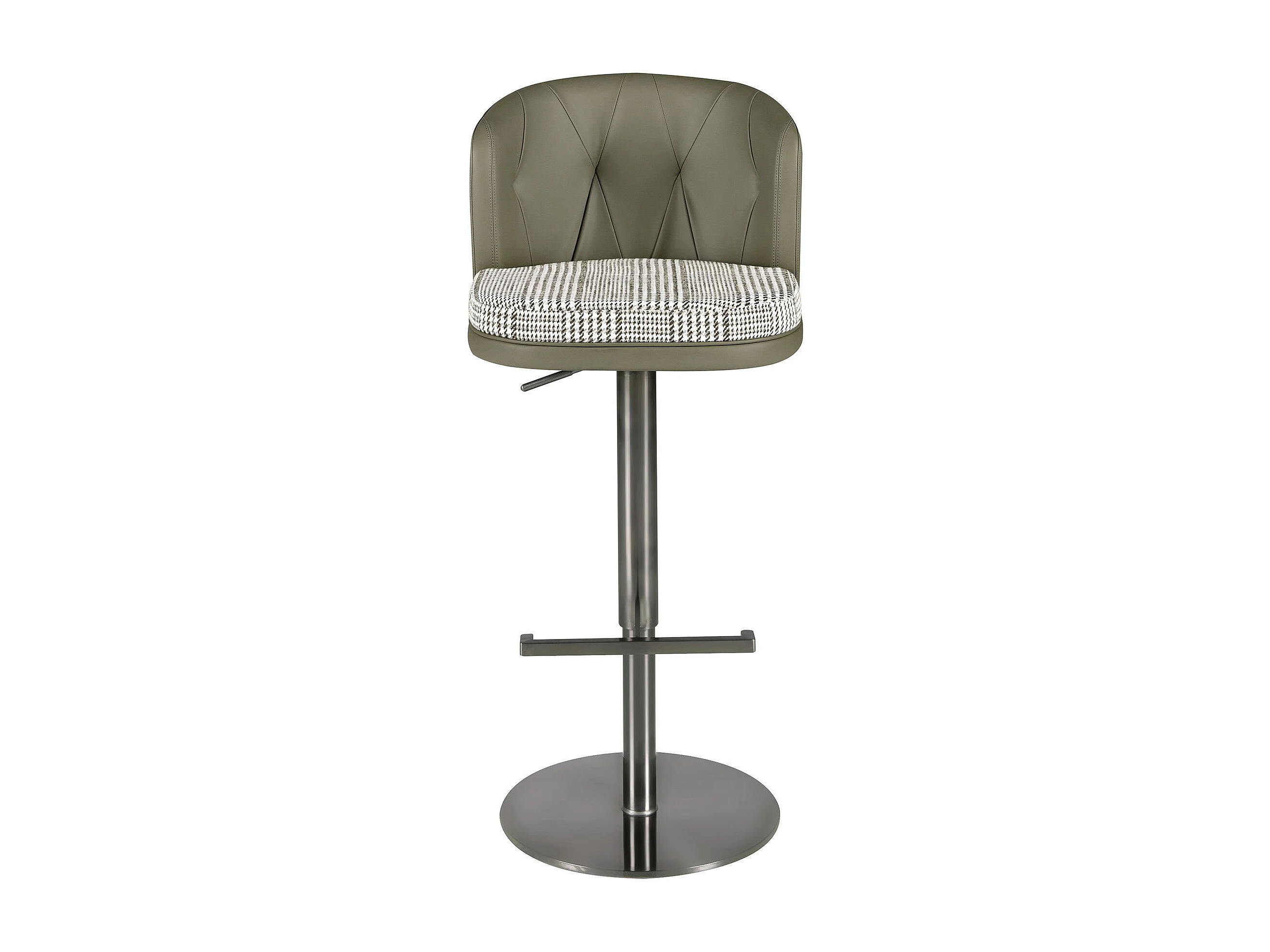 Tabouret pivotant en tissu vert foncé et blanc et similicuir vert olive 4228 ANGEL CERDA