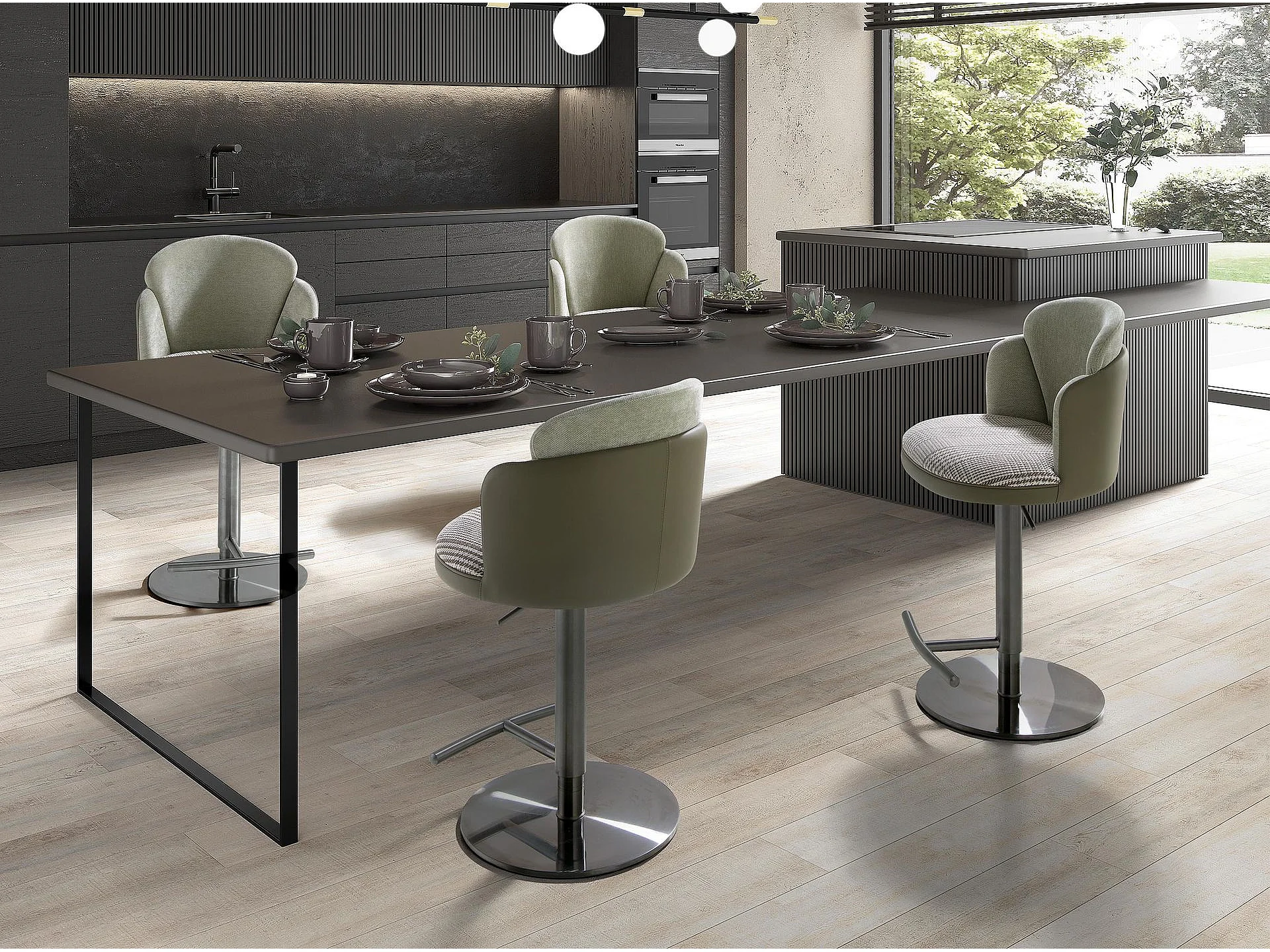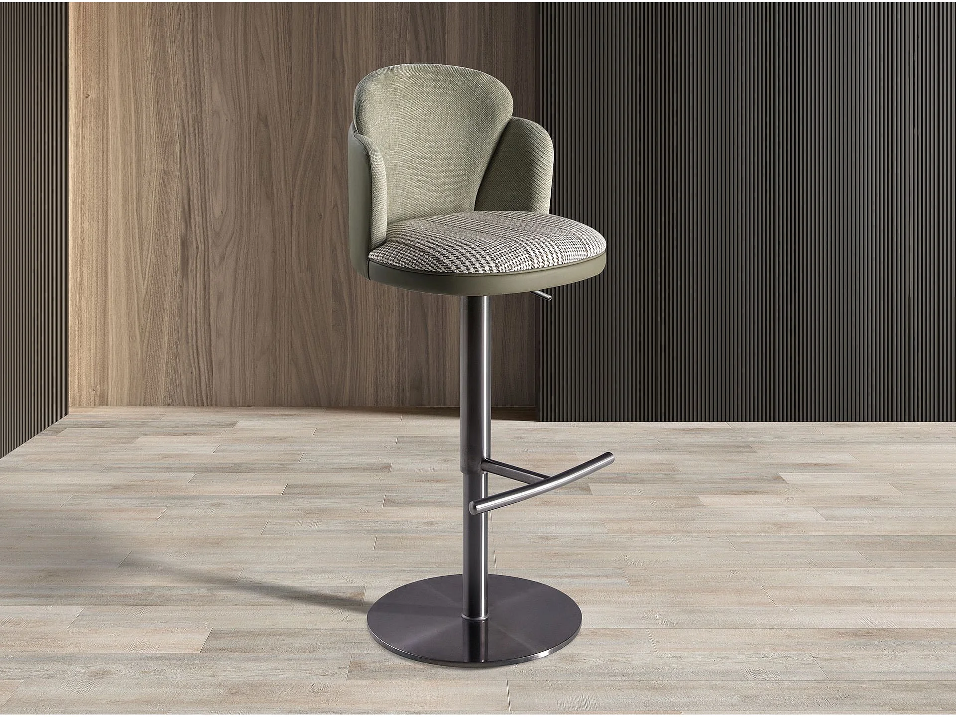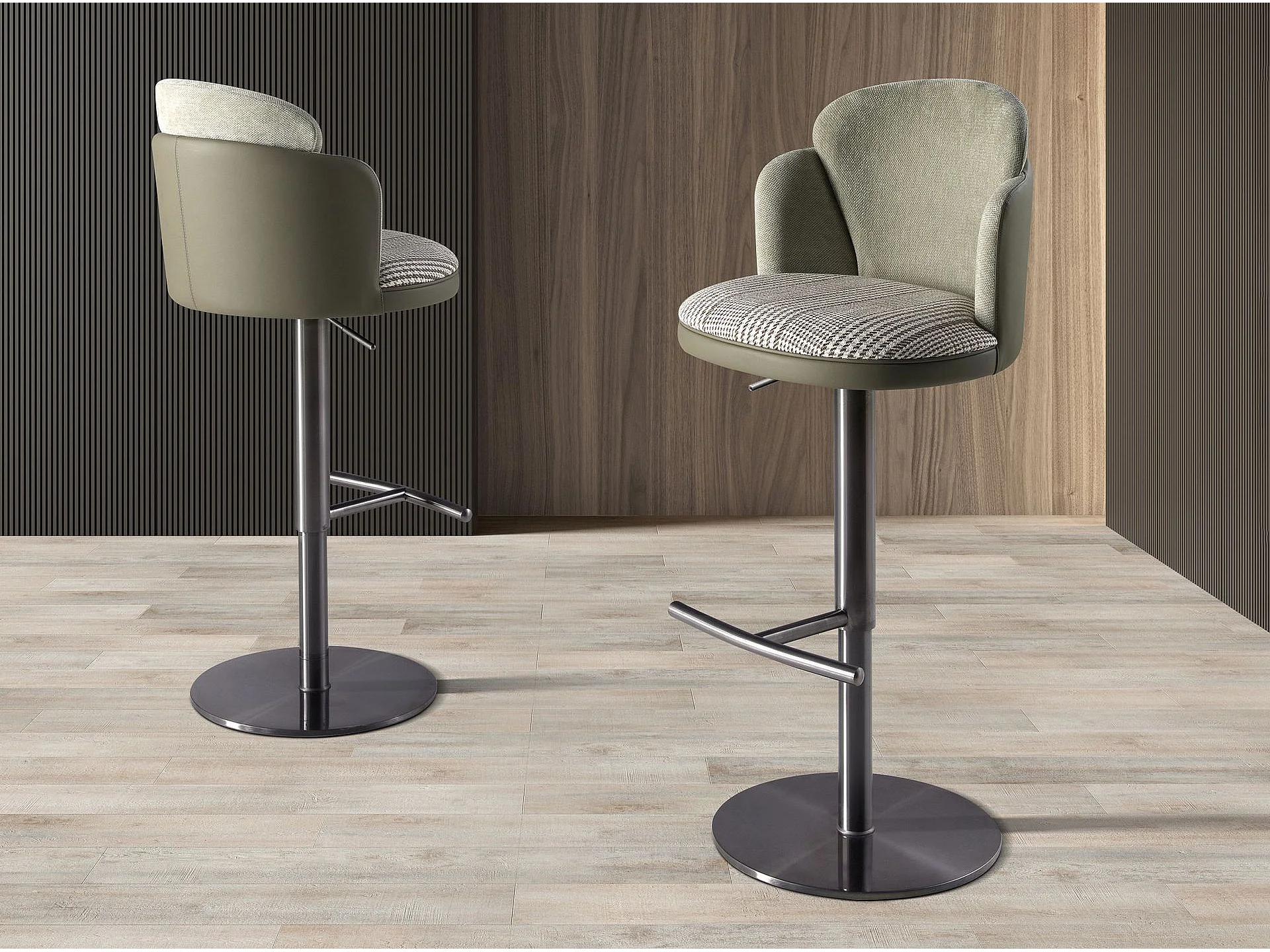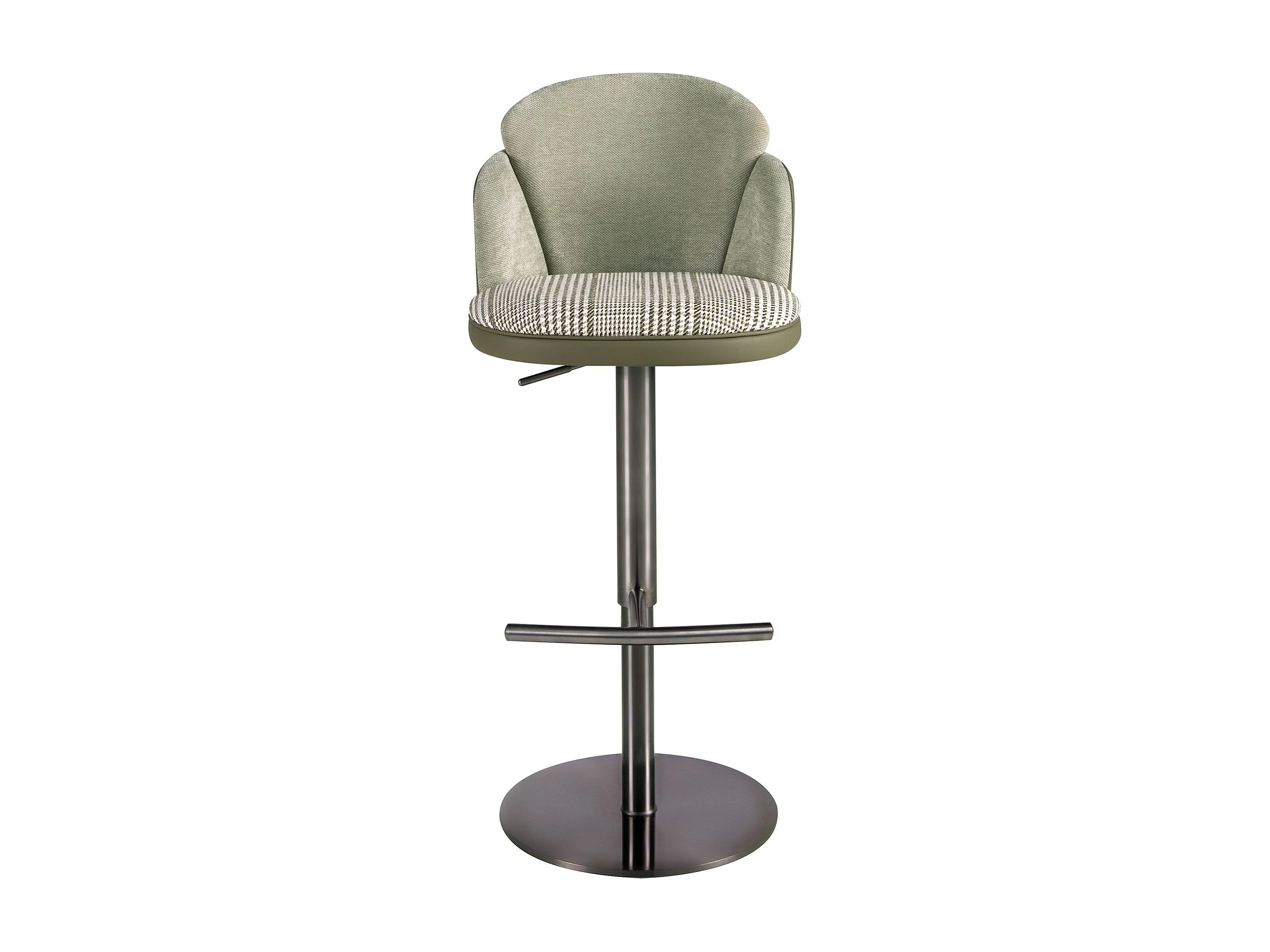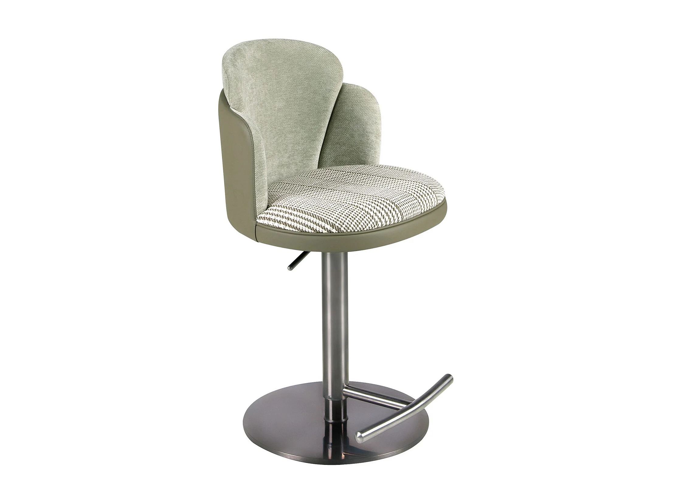 Tabouret pivotant en tissu vert foncé et blanc et similicuir vert olive 4233 ANGEL CERDA