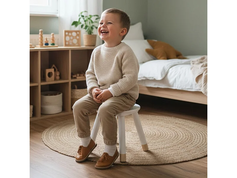 Tabouret pour Enfant Licorne en bois et fourrure blanche H 40 cm