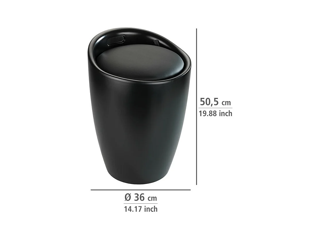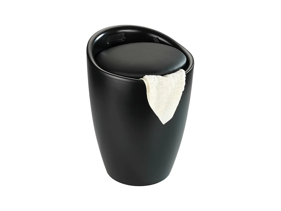 Tabouret rond en plastique avec coffre à linge 20L "Candy" - Noir - D 36 x H 50,5 cm