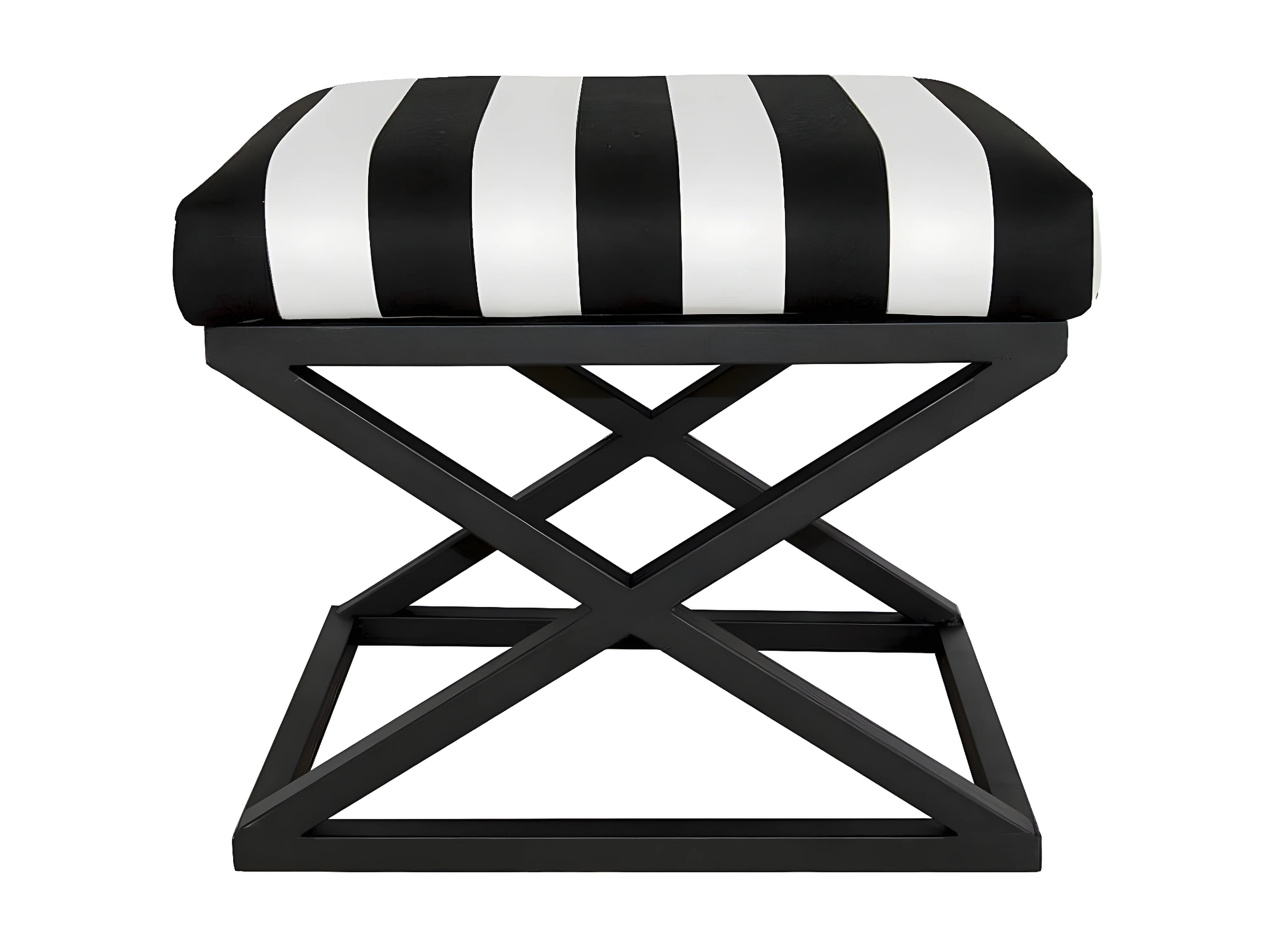 Tabouret style industriel Amida Métal Noir et Velours Motif Rayures Noir et Blanc