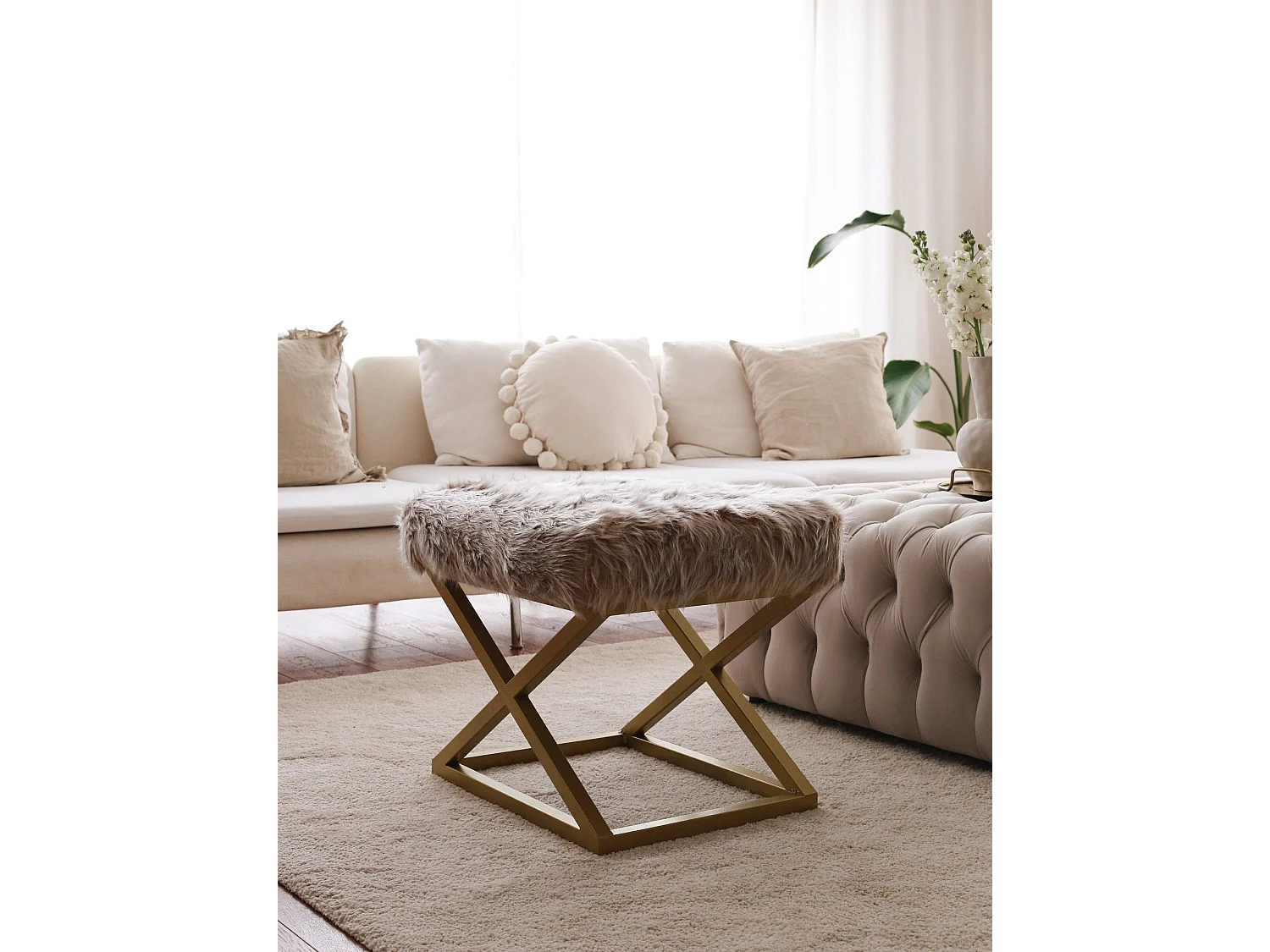 Tabouret style moderne Lemed Métal Or et Tissu peluche Marron