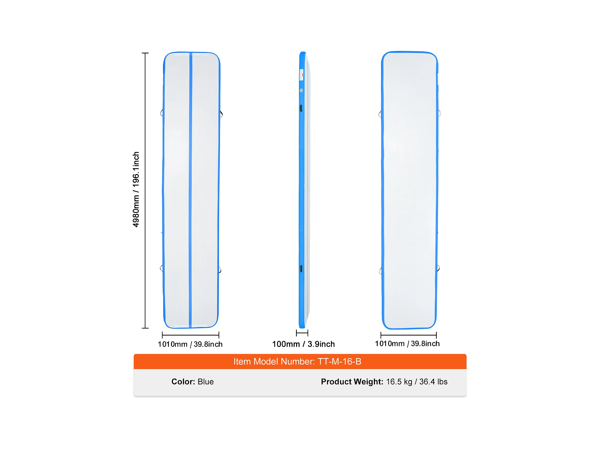Tapis de Gymnastique SucceBuy 4,9 m, Gonflable 10 cm Épaisseur, Bleu, avec Pompe pour Tumbling
